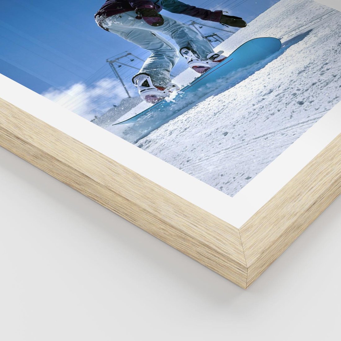 Plakat w ramie 40x50 - Snowboard na zimowych zboczach - snowboard, zima - rama drewno