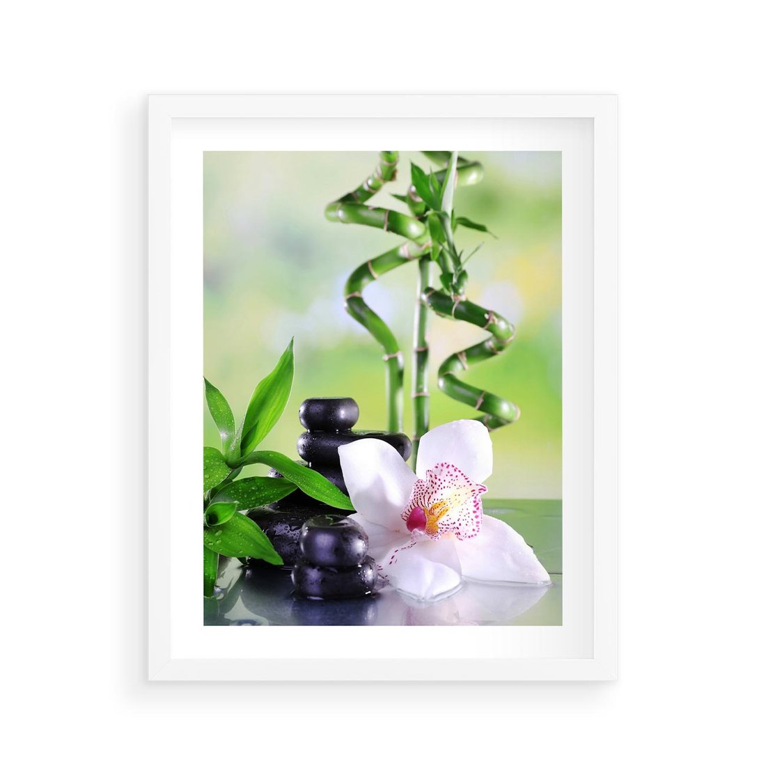 Plakat w ramie 40x50 - Spa pełne kwiatów i relaksu - spa, kwiat - rama biała