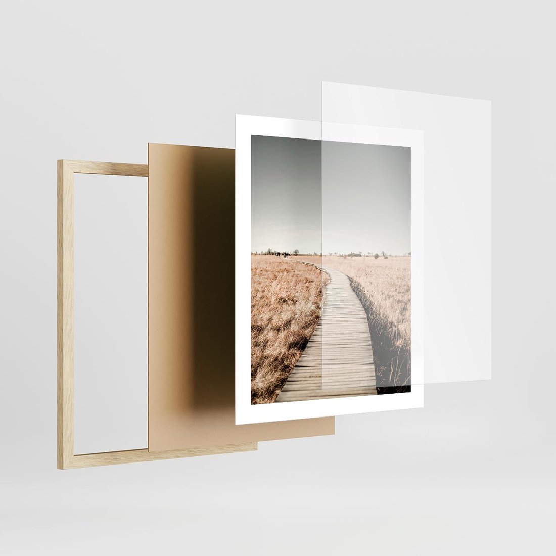 Plakat w ramie 40x50 - Spacer Ścieżką w Suchych Trawach - ścieżka wśród suchych traw - rama drewno