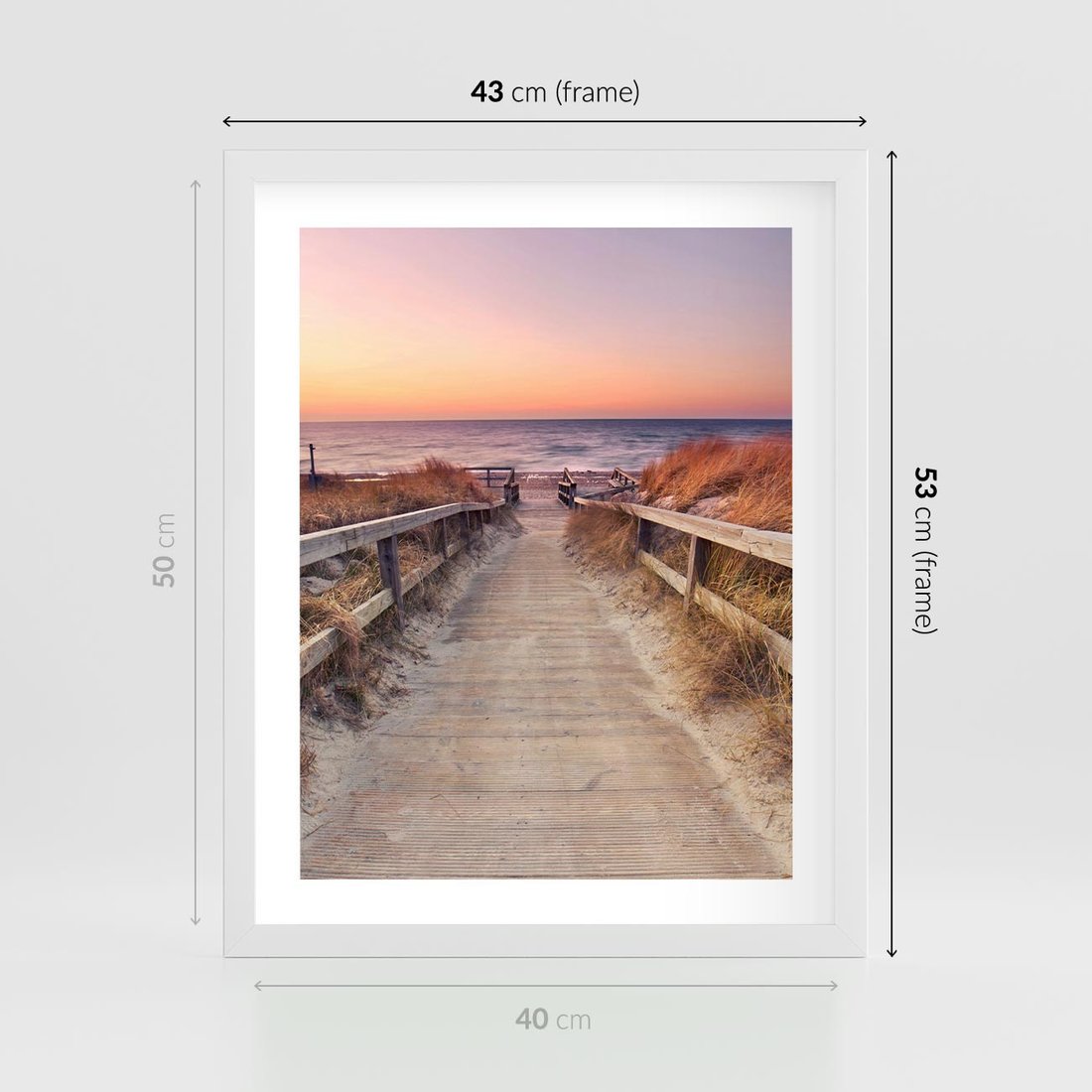 Plakat w ramie 40x50 - Spacer Wśród Przyboju - dróżka, morze - rama biała