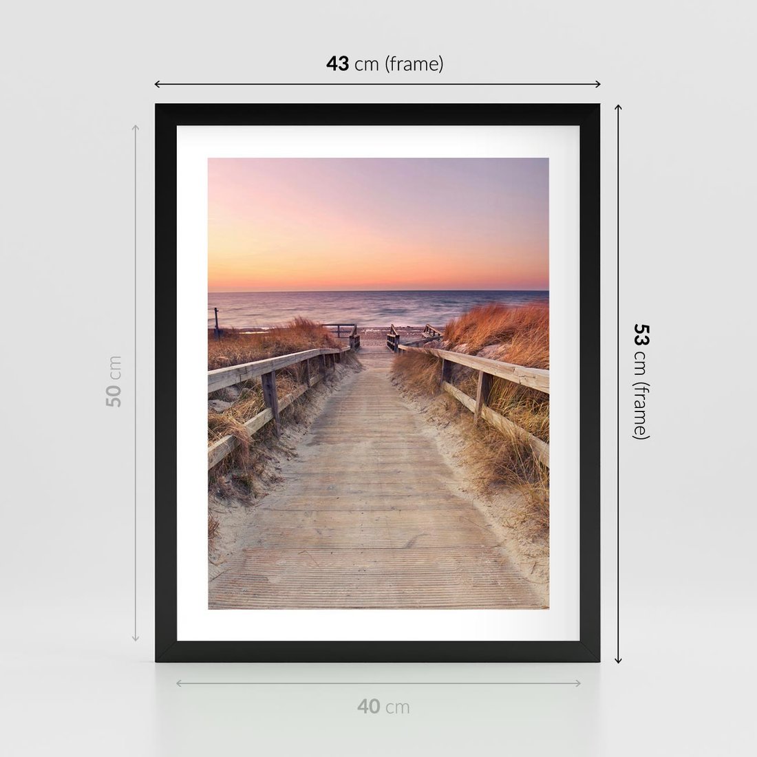 Plakat w ramie 40x50 - Spacer Wśród Przyboju - dróżka, morze - rama czarna