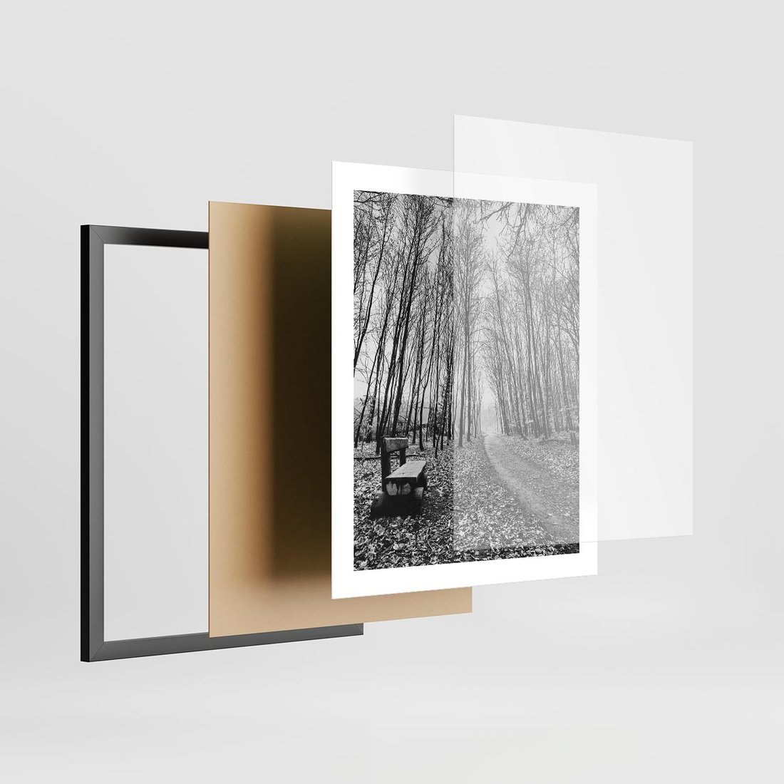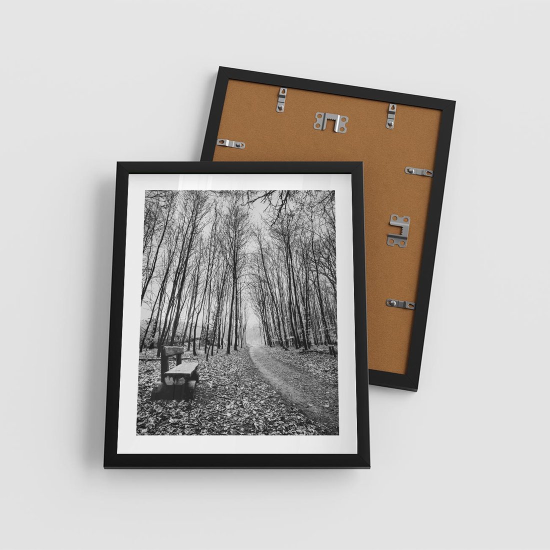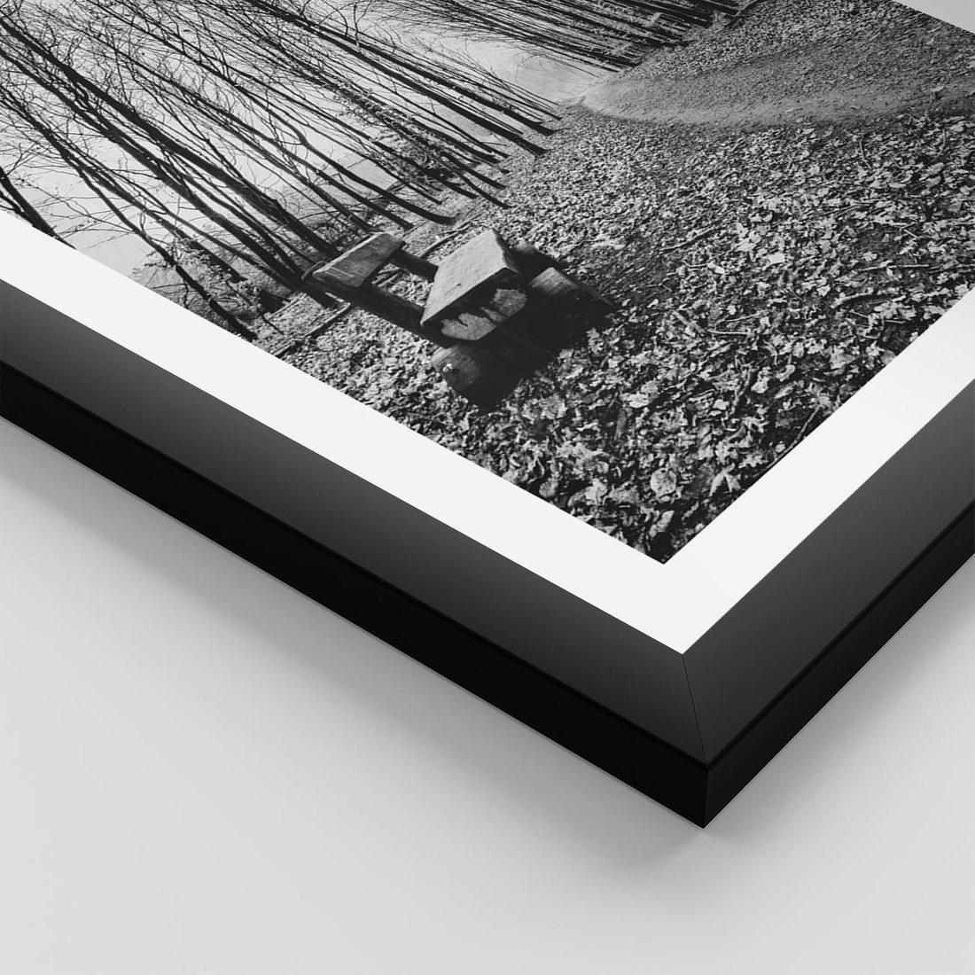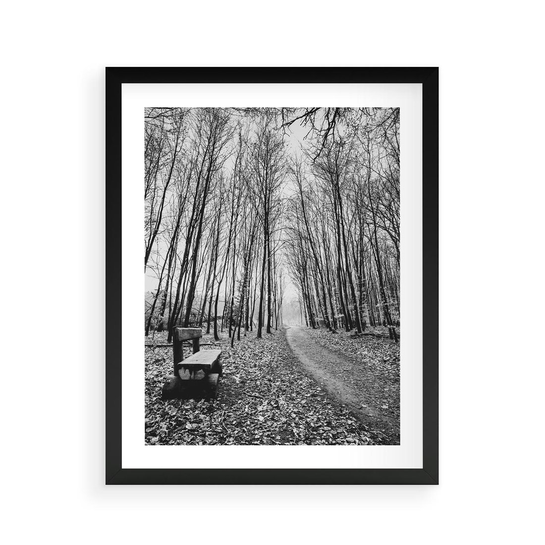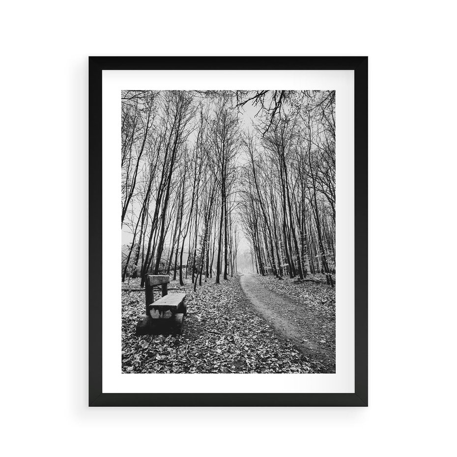 Plakat w ramie 40x50 - Spadające Liście - czarno białe zdjecie, park - rama czarna