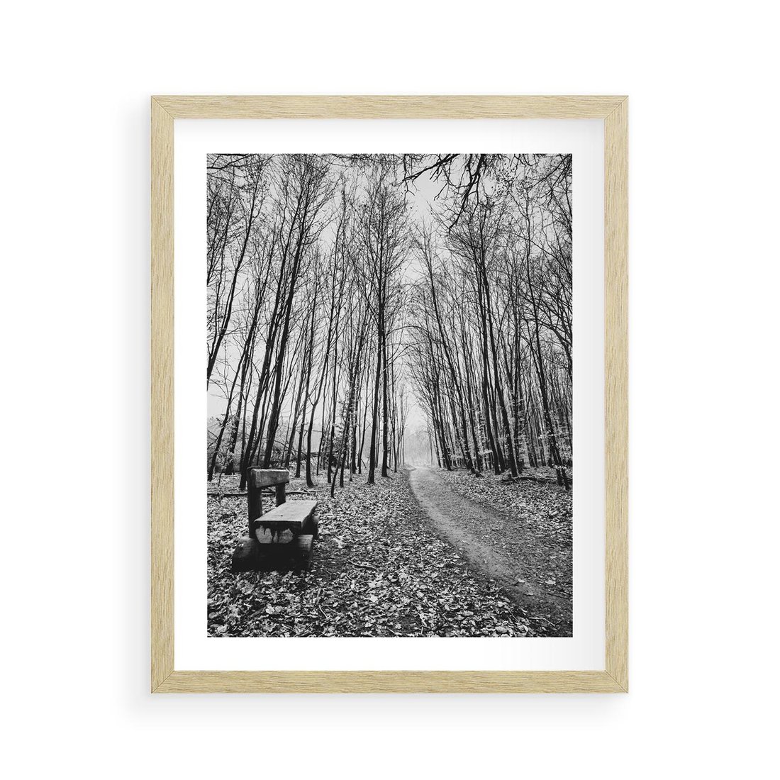 Plakat w ramie 40x50 - Spadające Liście - czarno białe zdjecie, park - rama drewno