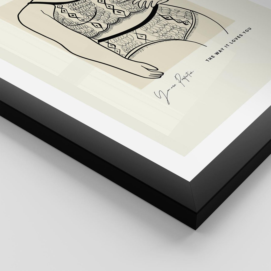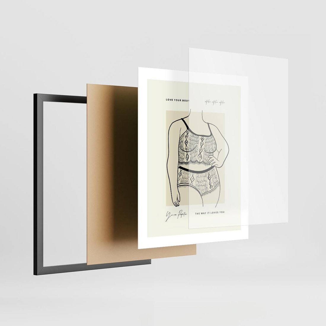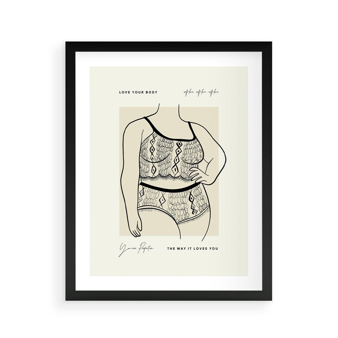 Ten plakat to hołd dla kobiecej siły i piękna. Delikatny rysunek kobiety w bieliźnie, wzbogacony subtelnie dobraną typografią, tworzy wyjątkową kompozycję, oddającą piękno i pewność siebie.