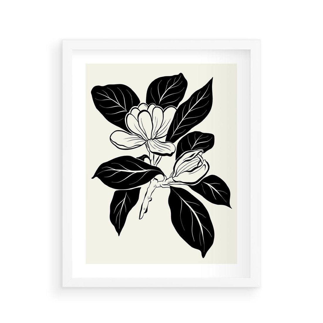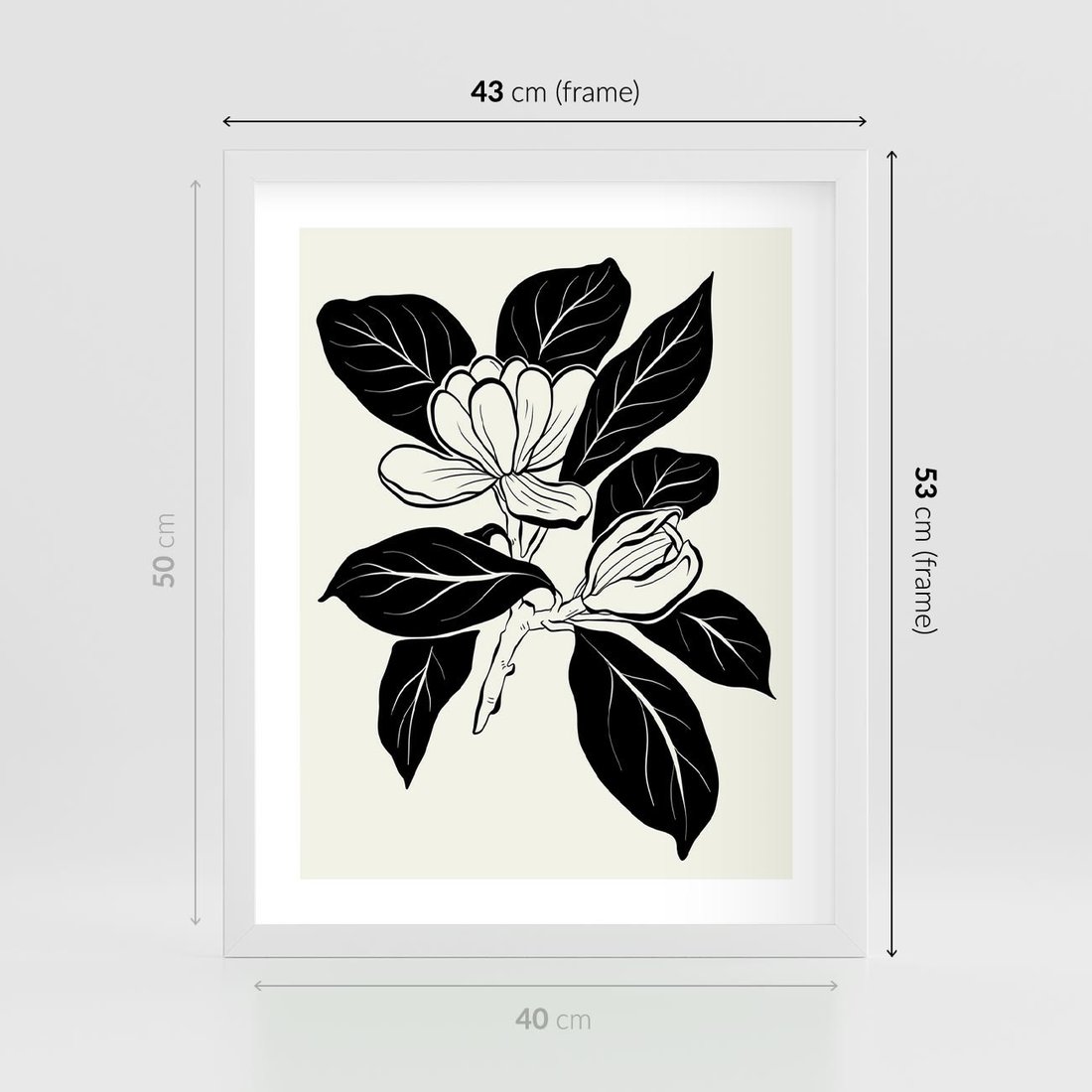 Plakat w ramie 40x50 - Spojrzenie w kształty kwiatów - kwiaty magnolii, minimalizm - rama biała