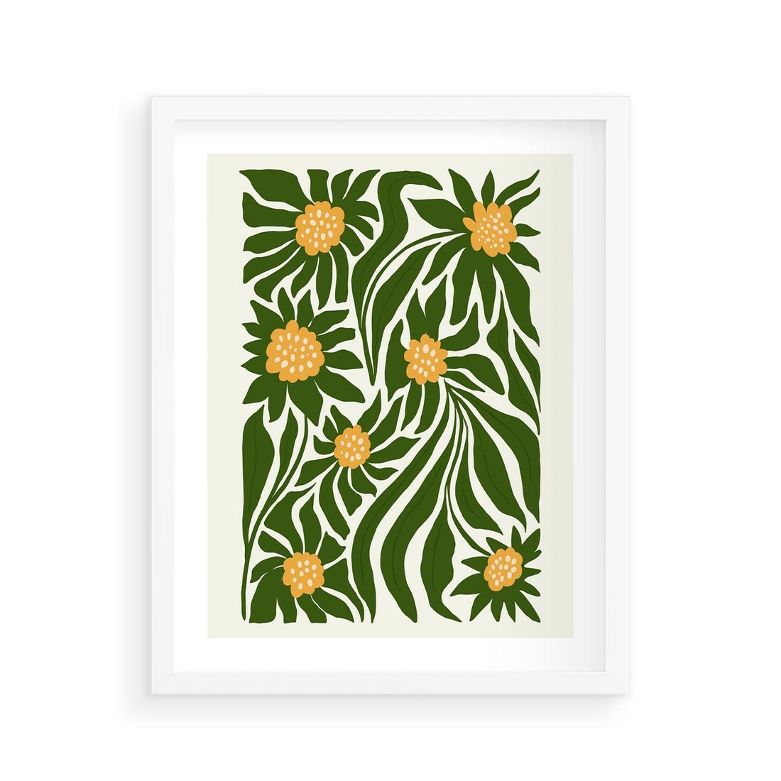 Plakat w ramie 40x50 - Spojrzenie wgłąb roślinnego świata - abstrakcyjne kwiaty, kompozycja - rama biała