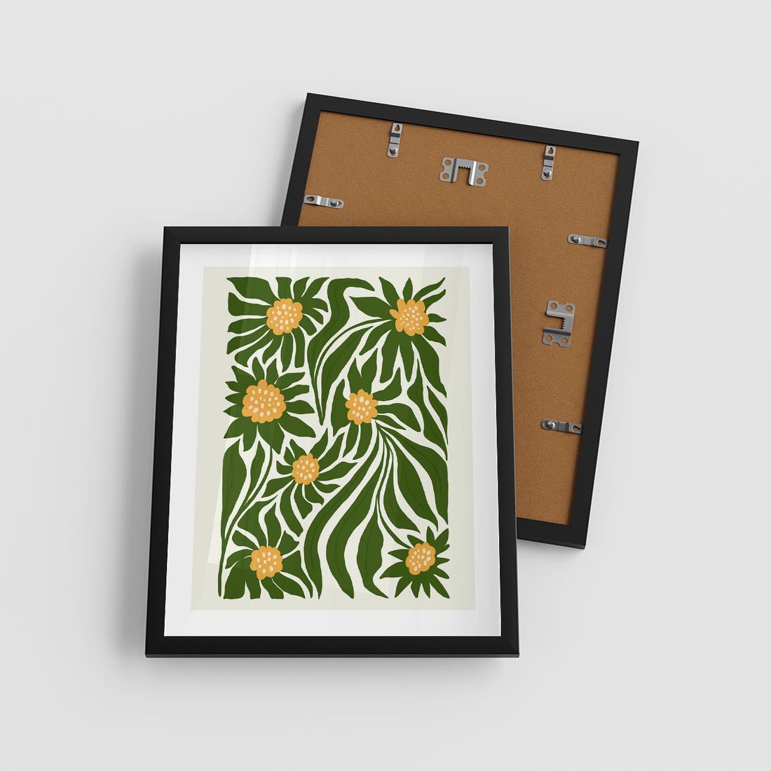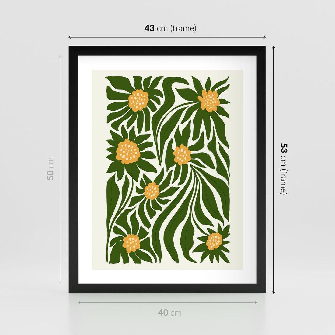 Plakat w ramie 40x50 - Spojrzenie wgłąb roślinnego świata - abstrakcyjne kwiaty, kompozycja - rama czarna