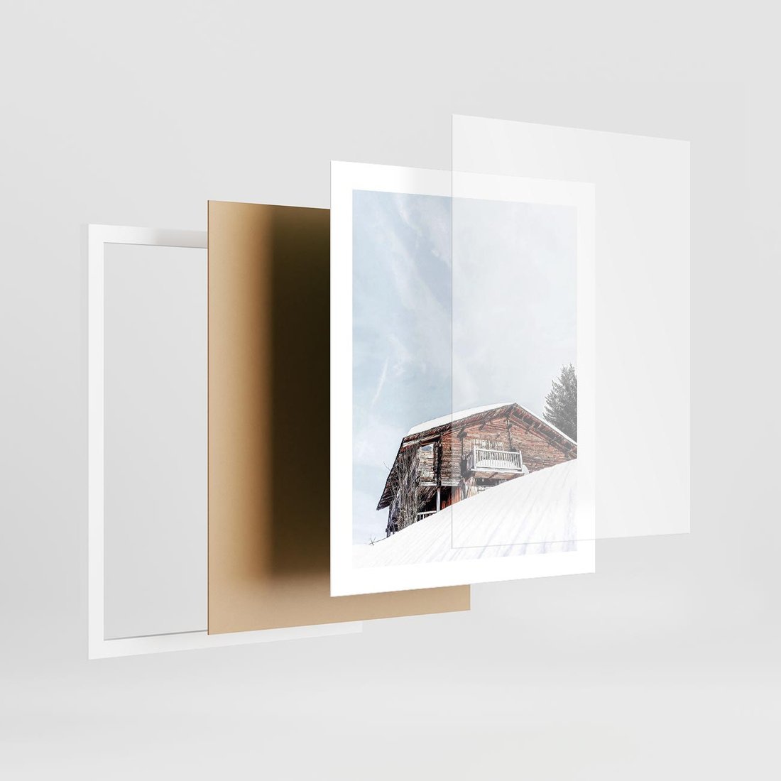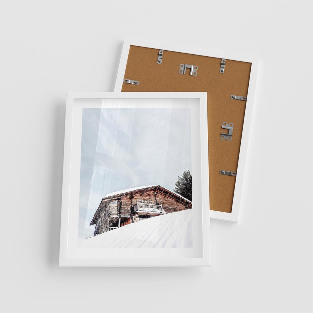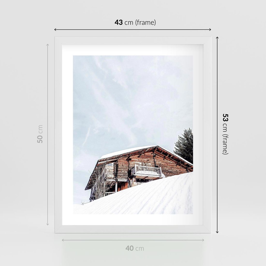 Plakat w ramie 40x50 - Spokój Górskiej Zimy - chatka w górach, domek górski - rama biała