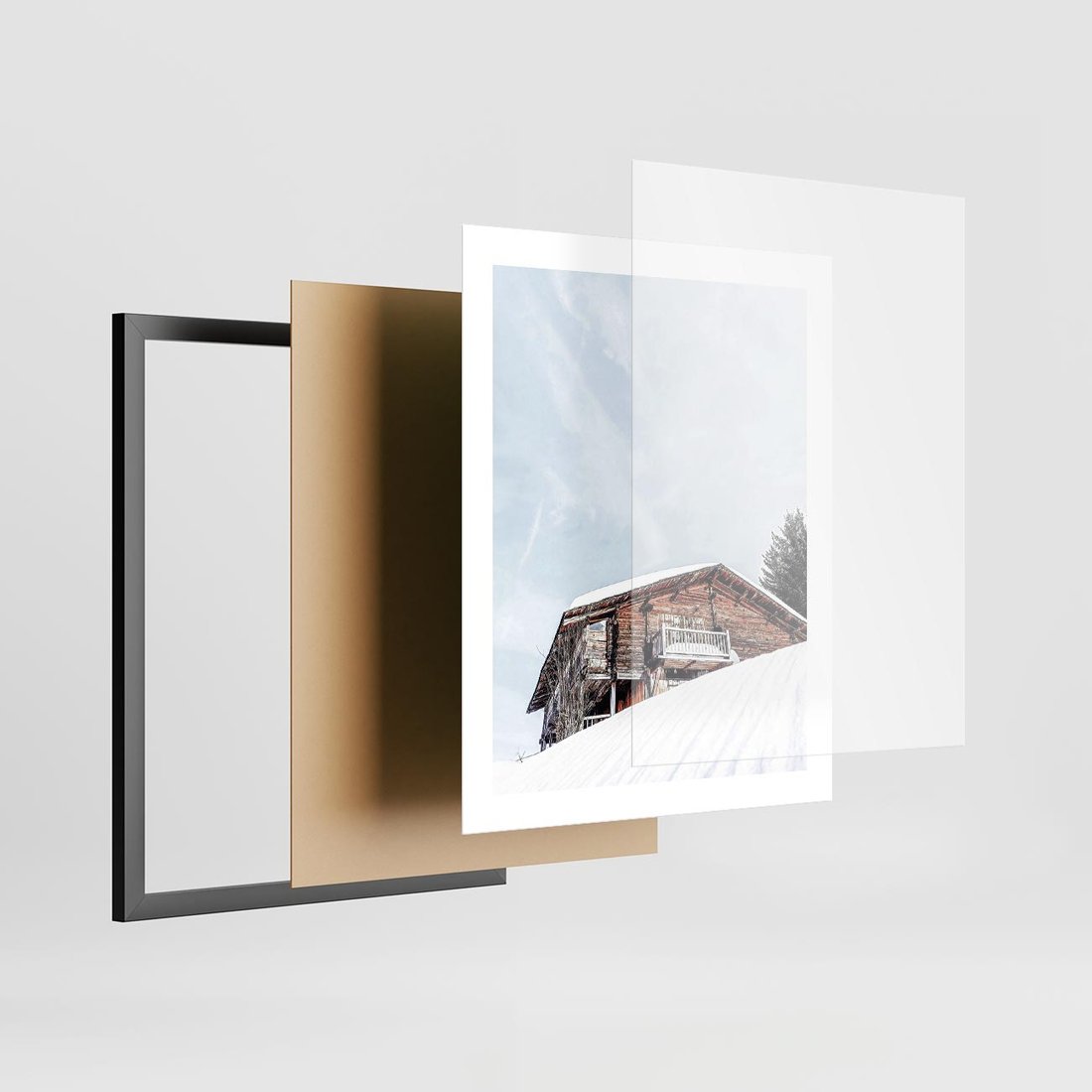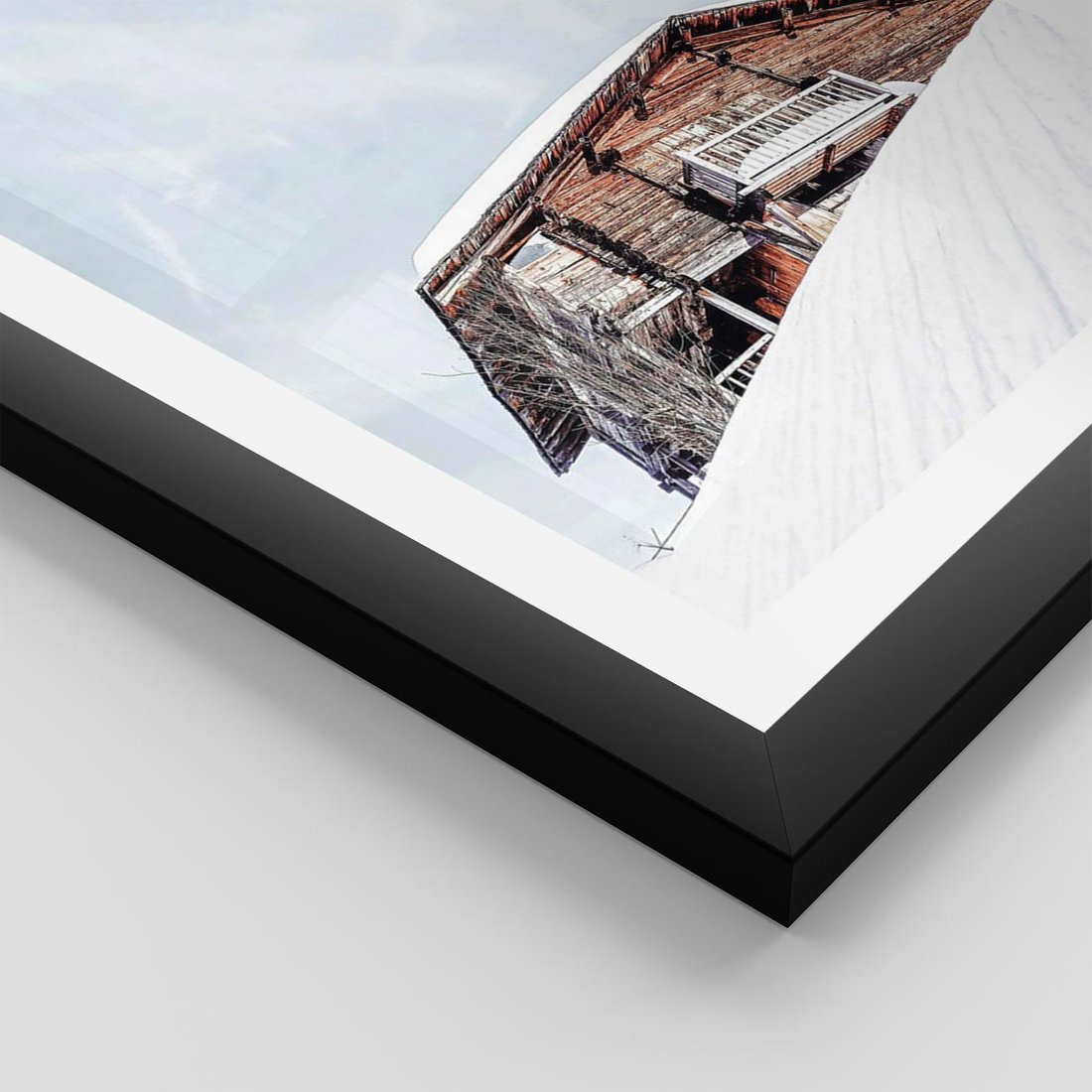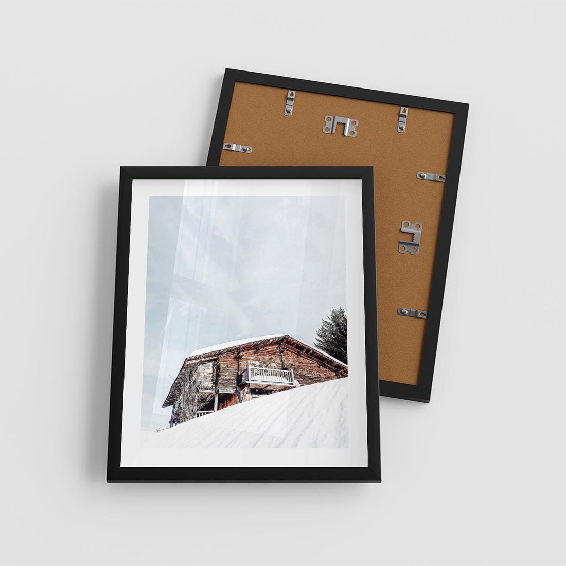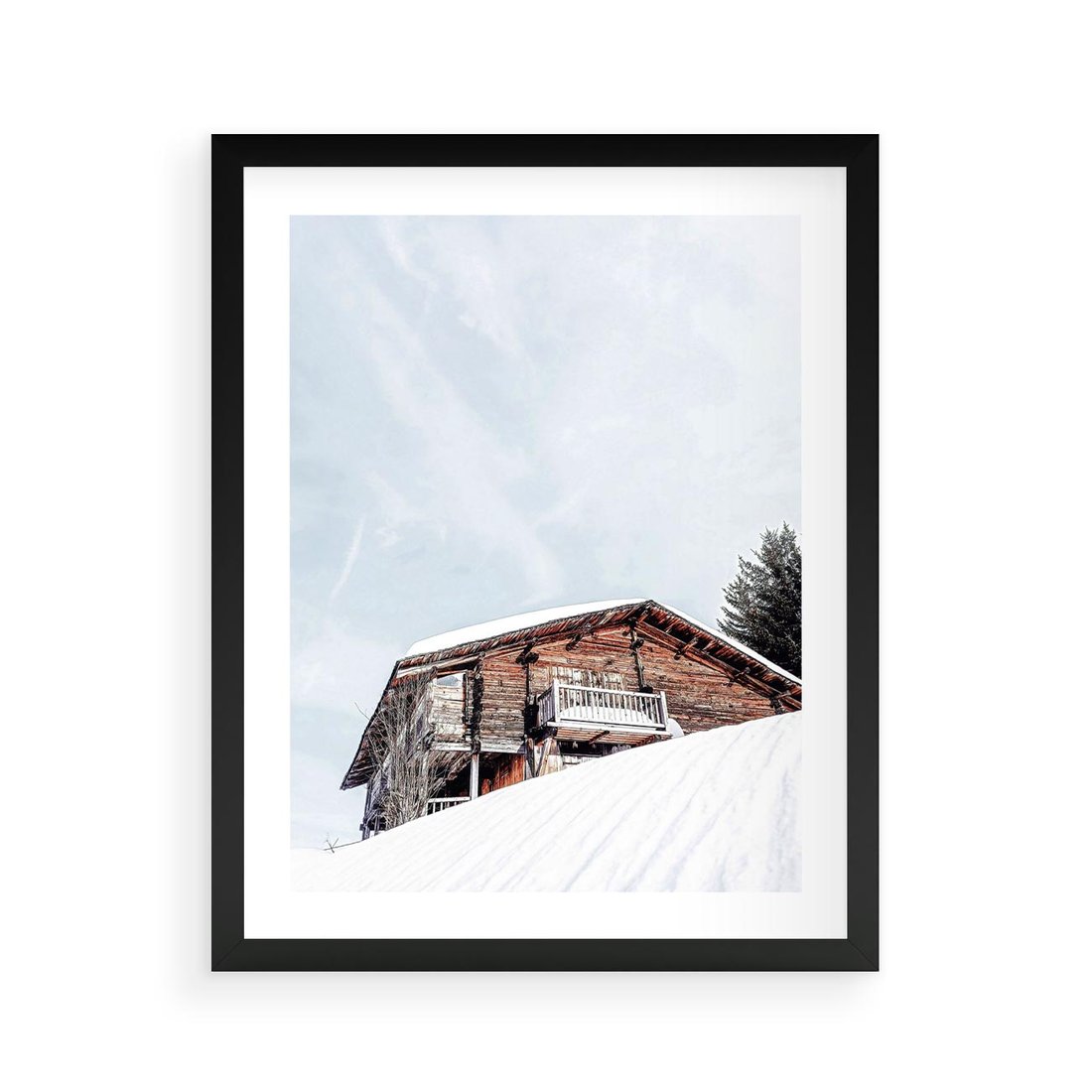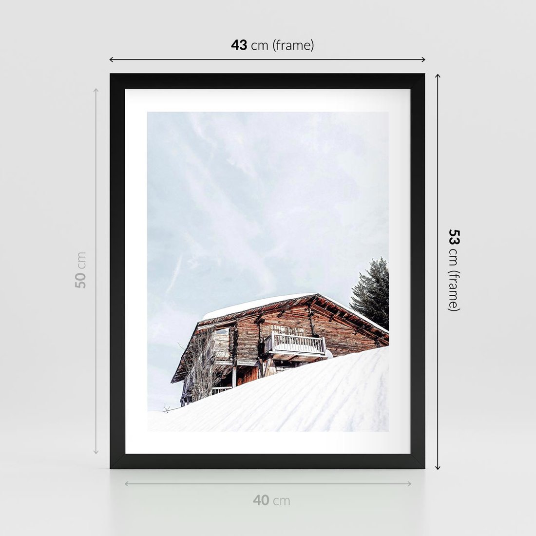 Plakat w ramie 40x50 - Spokój Górskiej Zimy - chatka w górach, domek górski - rama czarna