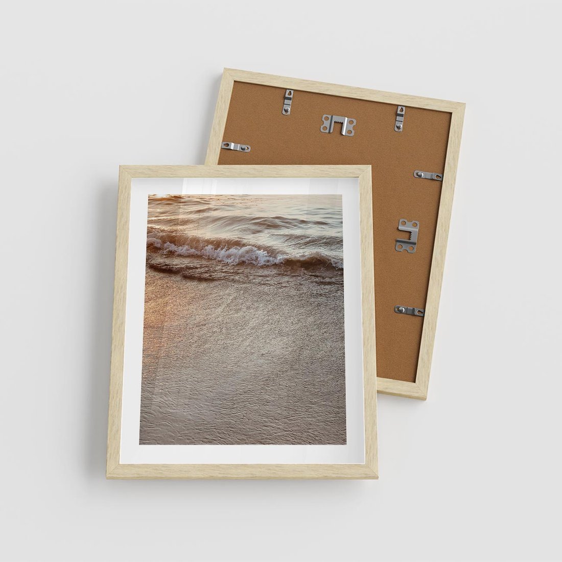 Plakat w ramie 40x50 - Spokój Morza: Fale na Plaży - fale, morze - rama drewno