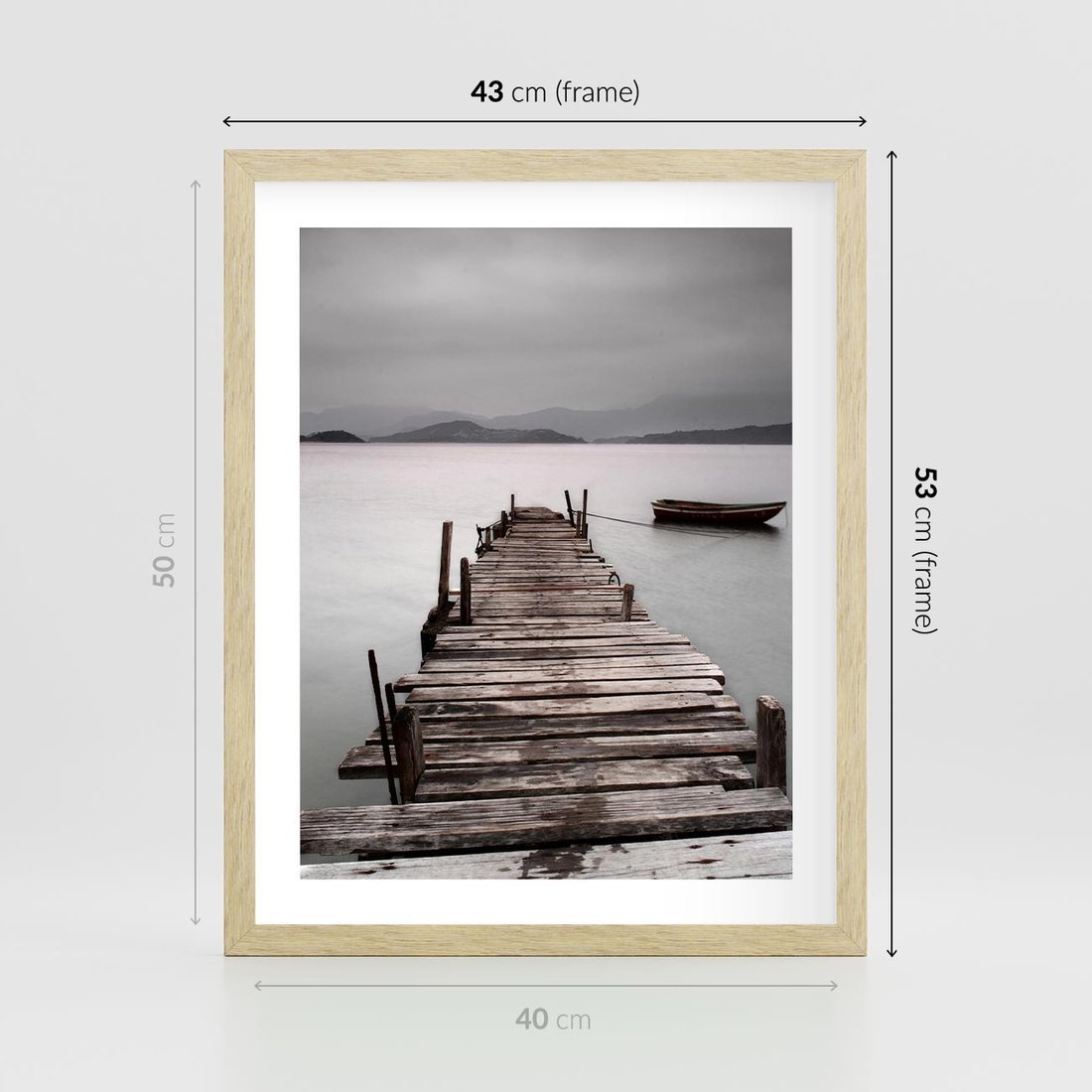 Plakat w ramie 40x50 - Spokój nad Jeziorem - pomost, jezioro - rama drewno