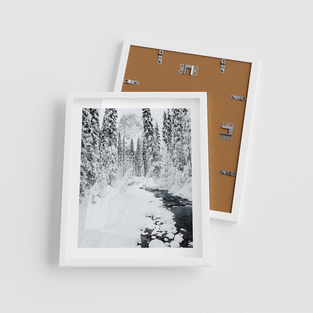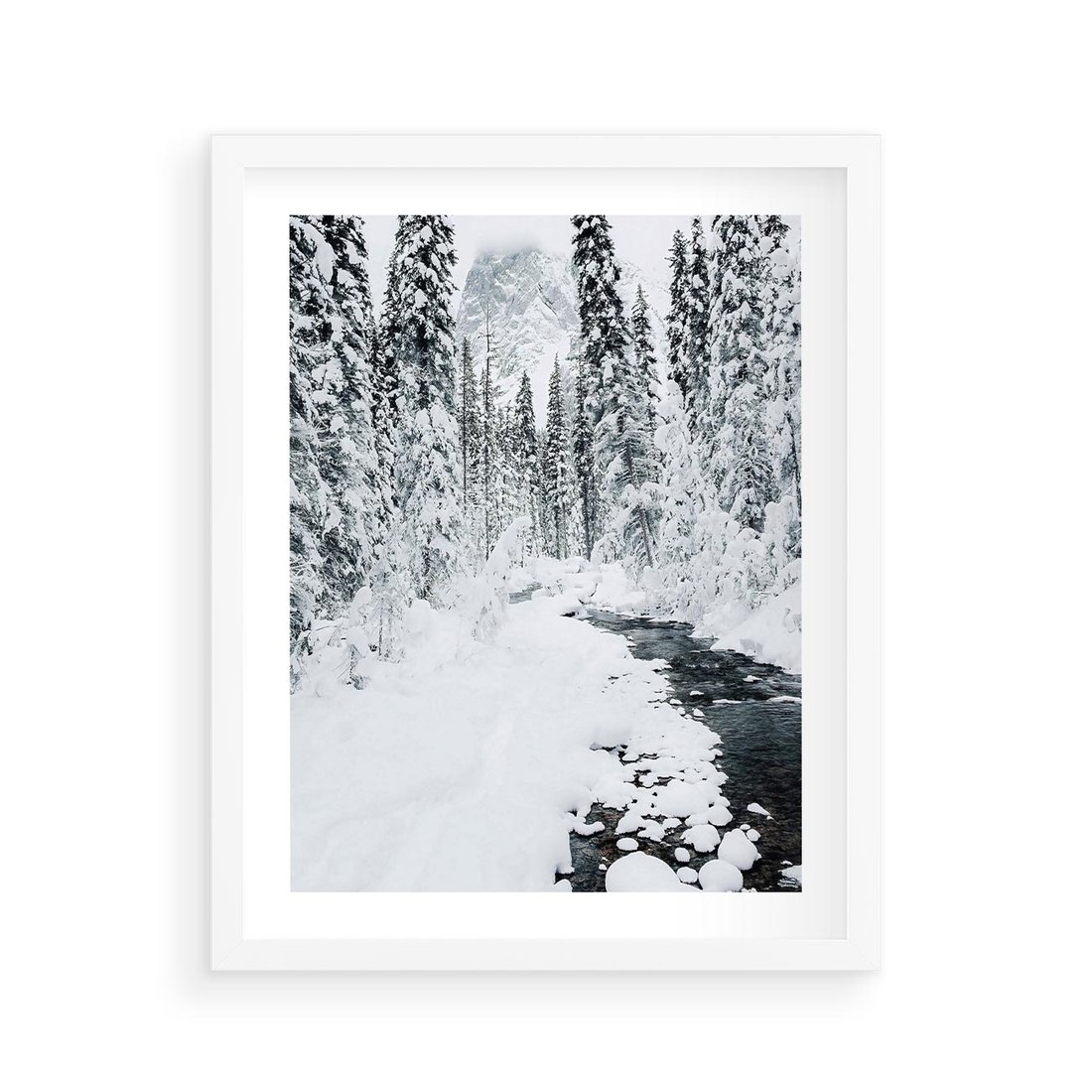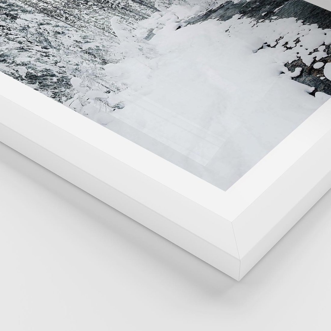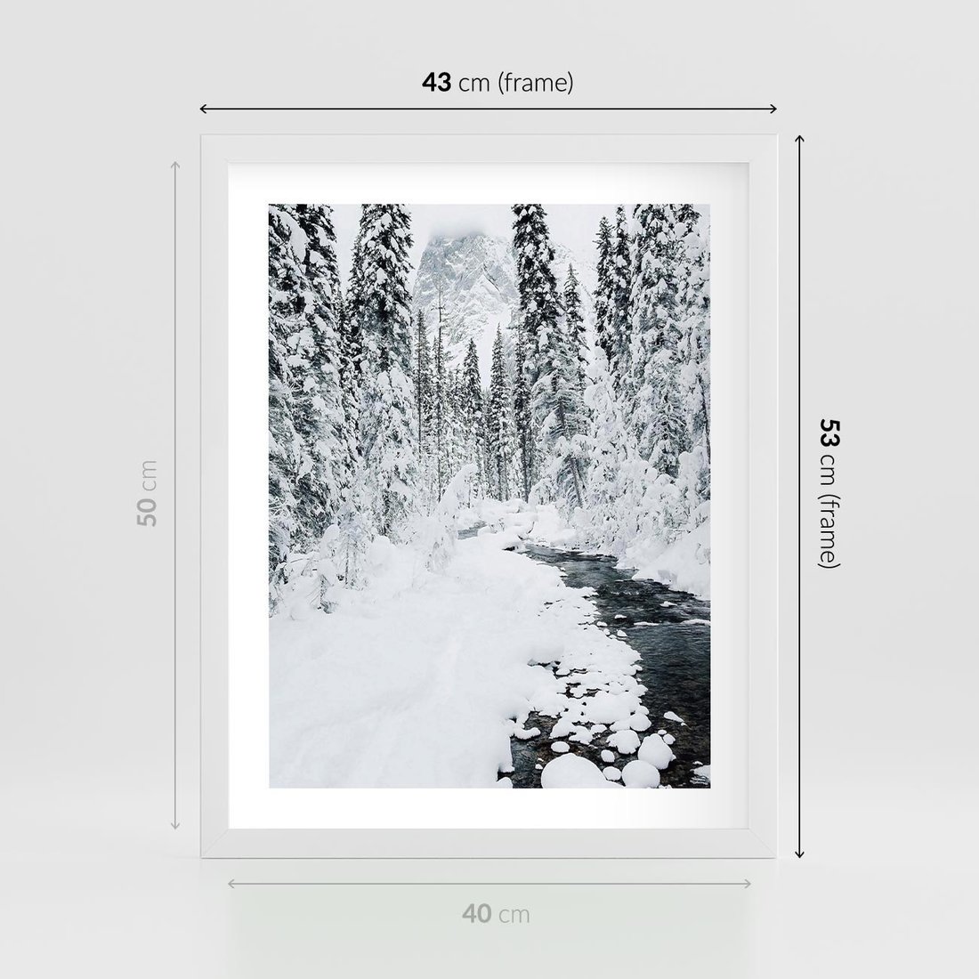 Plakat w ramie 40x50 - Spokój Zimowego Lasu w Górach - zima w lesie, w górach - rama biała