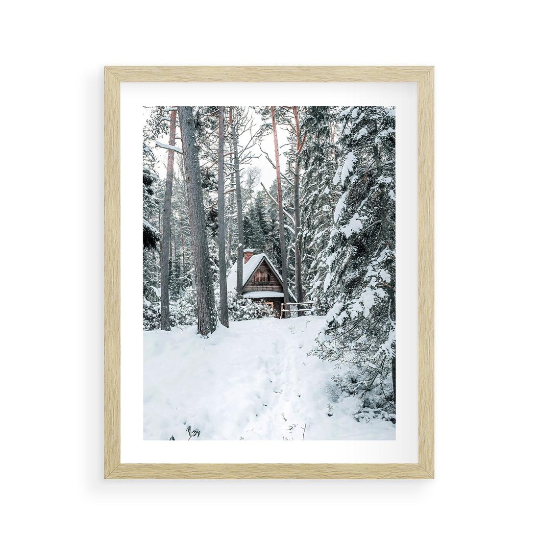 - Plakat w ramie 40x50 - Spokój Zimowej Przygody w Lesie