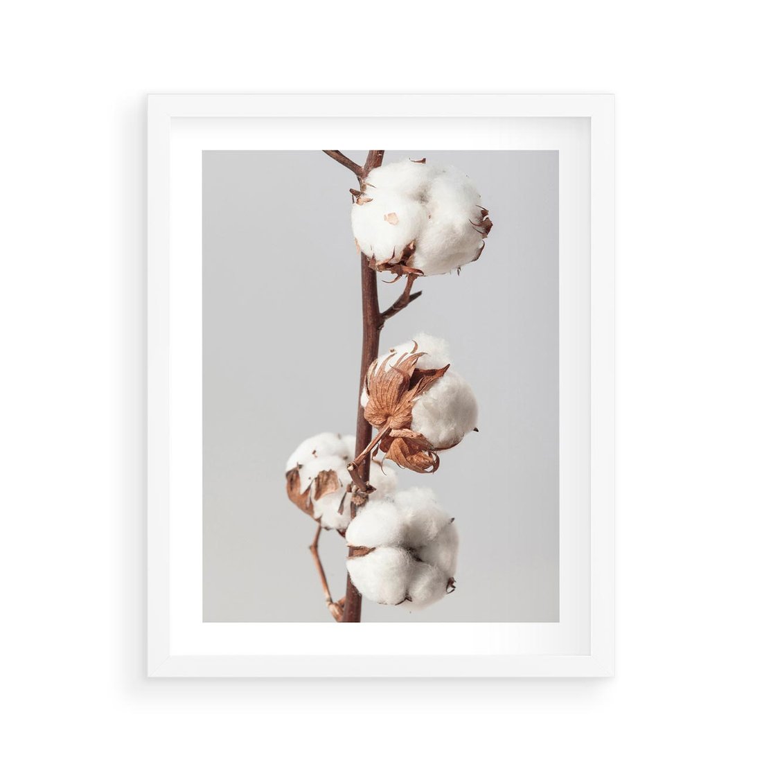 Plakat w ramie 40x50 - Spokojna Gałązka Bawełny - gałązka bawełny, prosta spokojna fotografia - rama biała