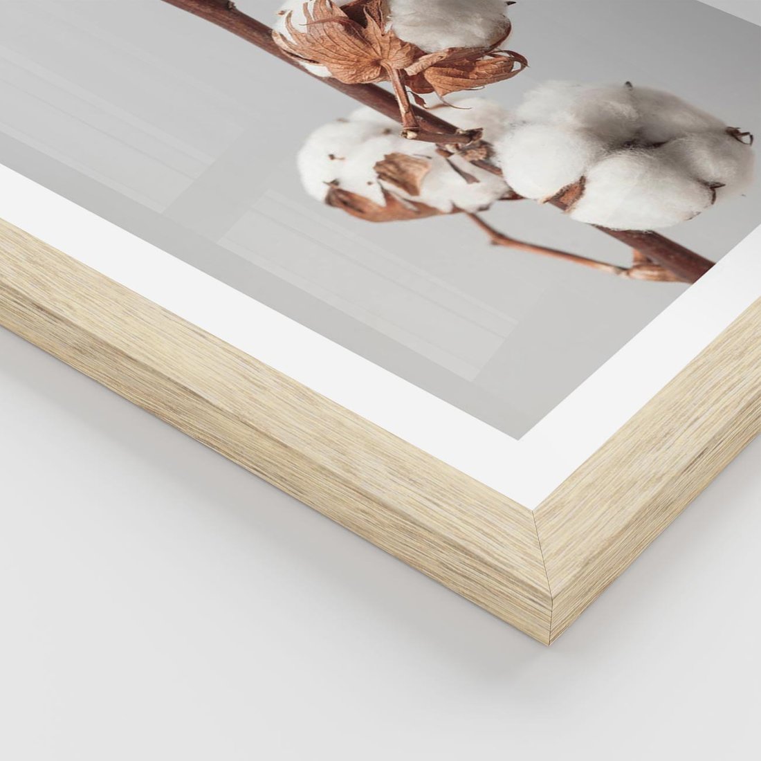 Plakat w ramie 40x50 - Spokojna Gałązka Bawełny - gałązka bawełny, prosta spokojna fotografia - rama drewno