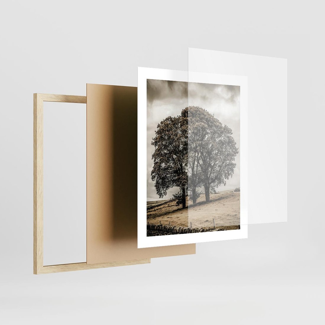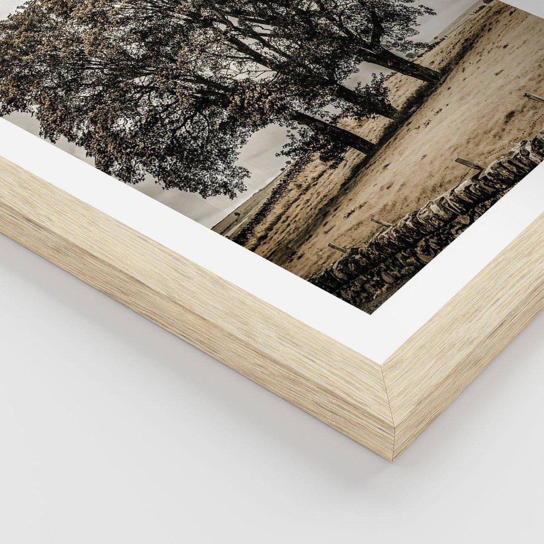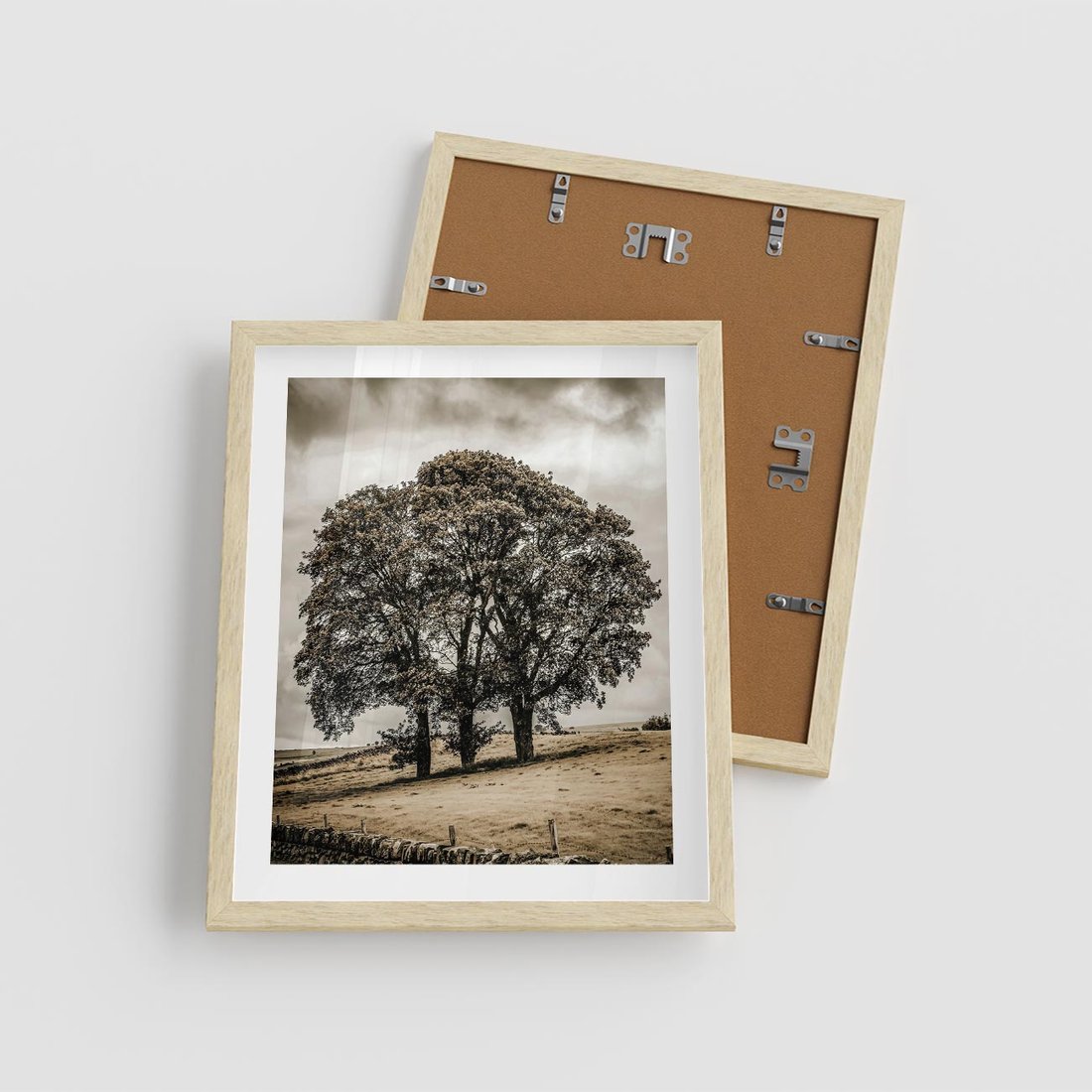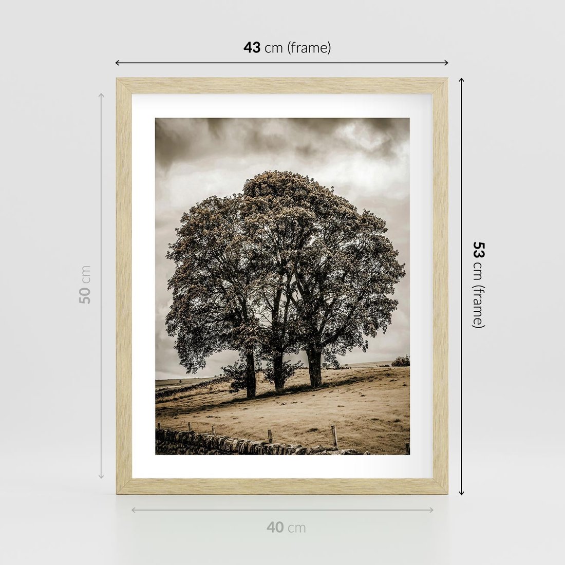 Plakat w ramie 40x50 - Spokojna Osamotniona Chwila - beżowe kolory, samotne drzewo na polu - rama drewno