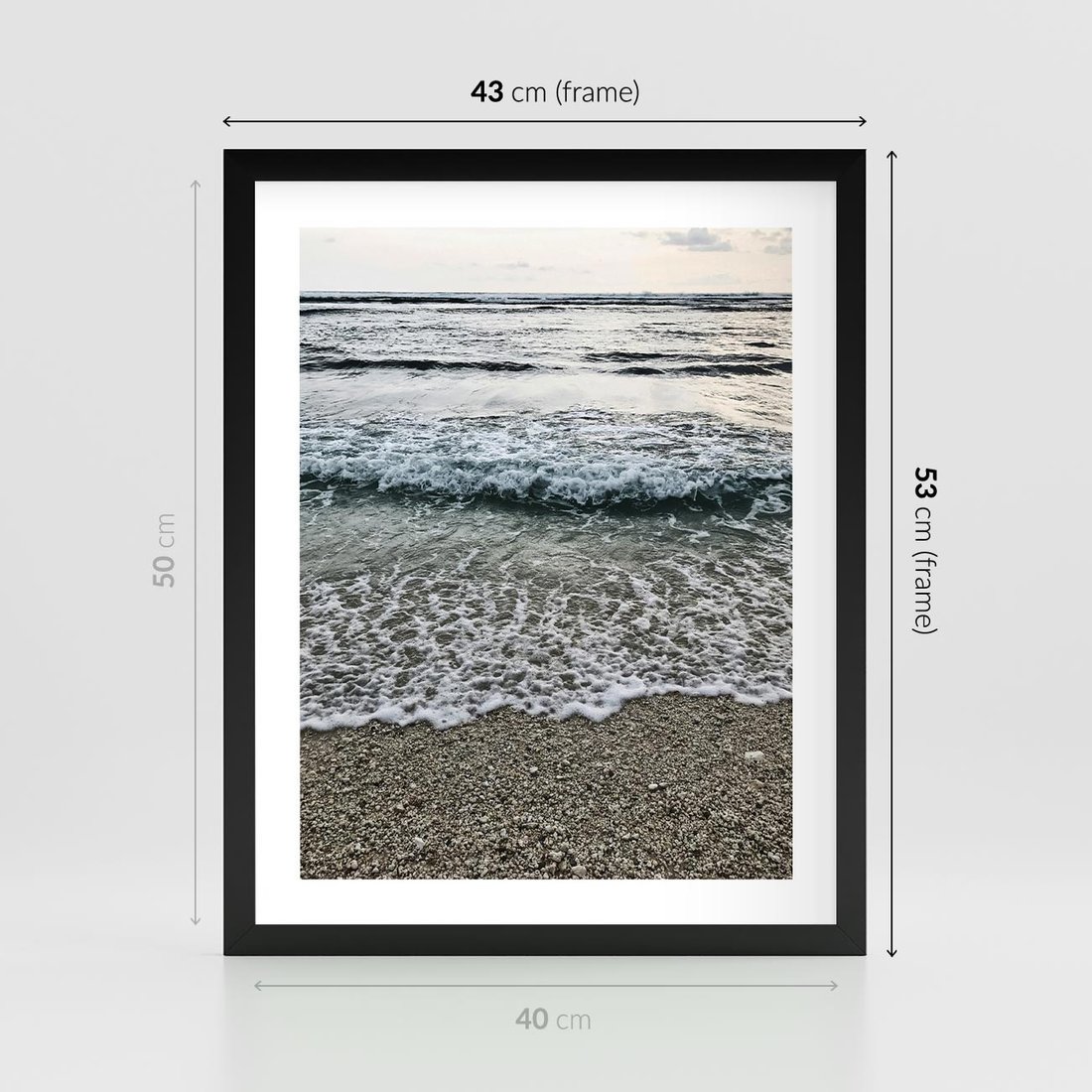 Plakat w ramie 40x50 - Spokojna Plaża - plaża, żwirek - rama czarna