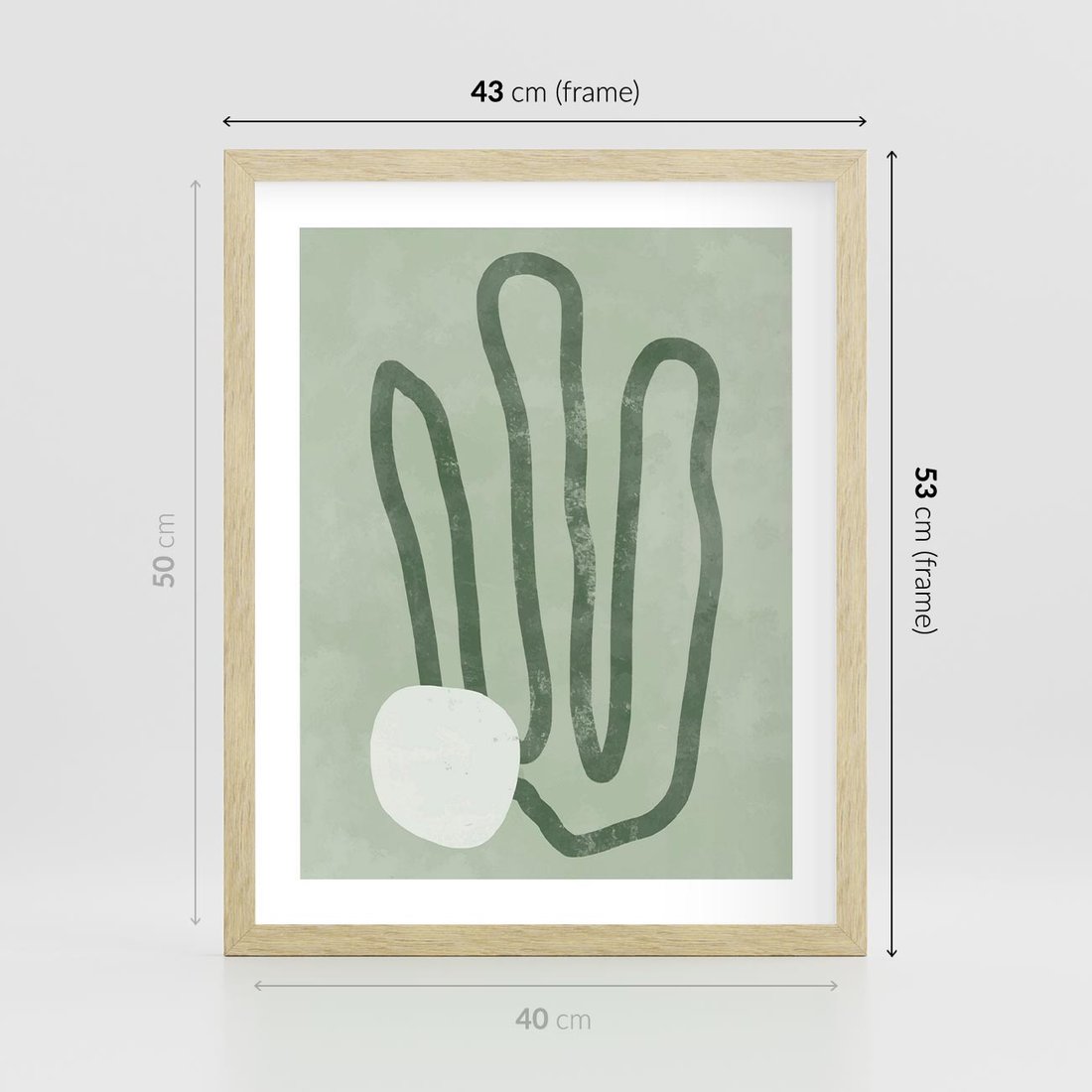 Plakat w ramie 40x50 - Spokojne Kształty Natury - zielona abstrakcja, zgaszona zieleń - rama drewno