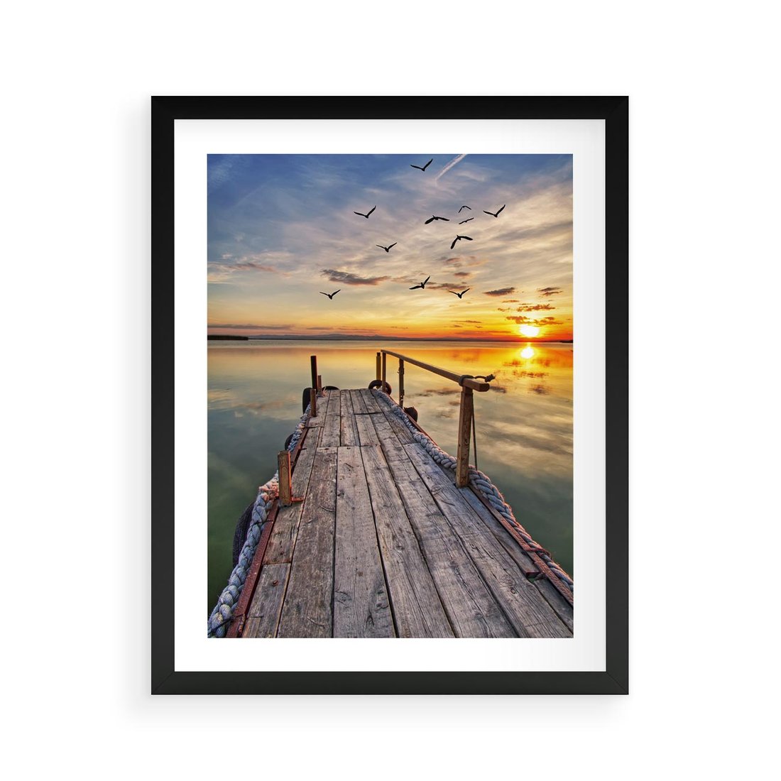 Plakat w ramie 40x50 - Spokojny pomost nad jeziorem - pomost, jezioro - rama czarna