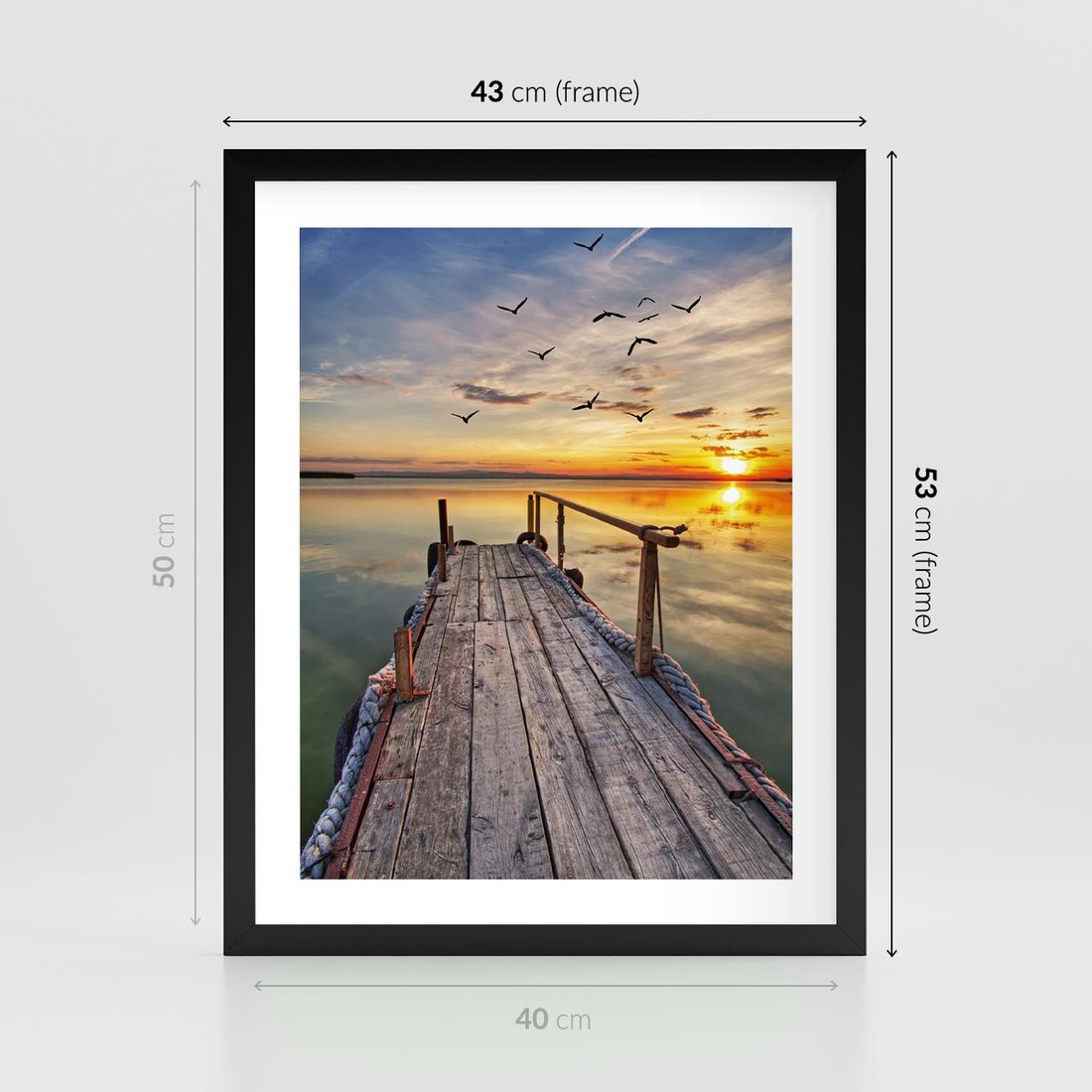 - Plakat w ramie 40x50 - Spokojny pomost nad jeziorem