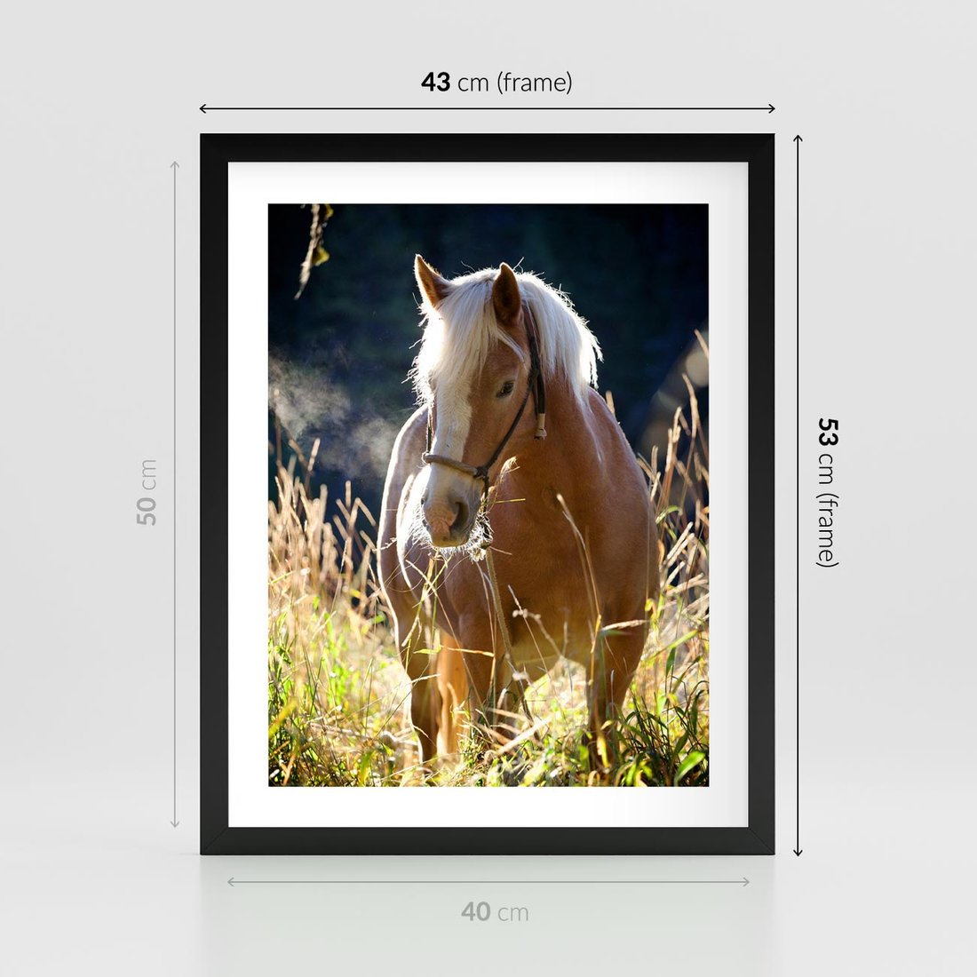 - Plakat w ramie 40x50 - Spotkanie konia na łące