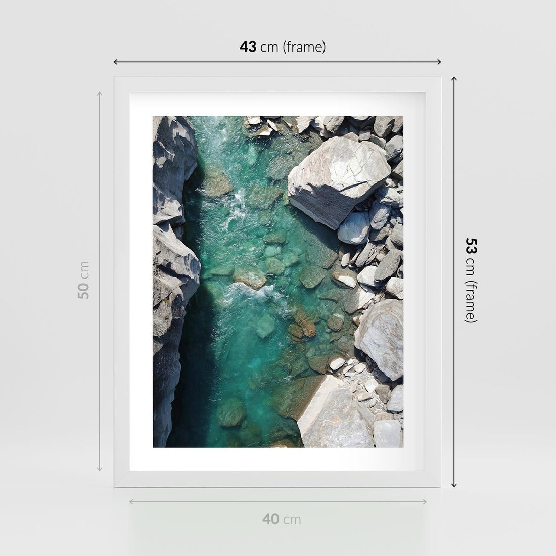 Plakat w ramie 40x50 - Spotkanie natury i siły - rzeka, skały - rama biała