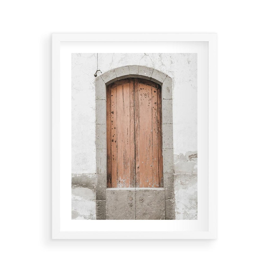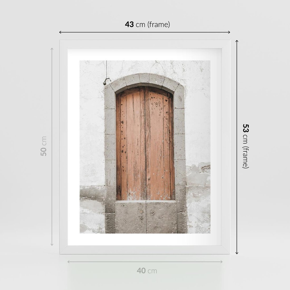 Plakat w ramie 40x50 - Śródziemnomorskie Drzwi Czasu - fotografia starych drzwi, śródziemnomorska architektura - rama biała