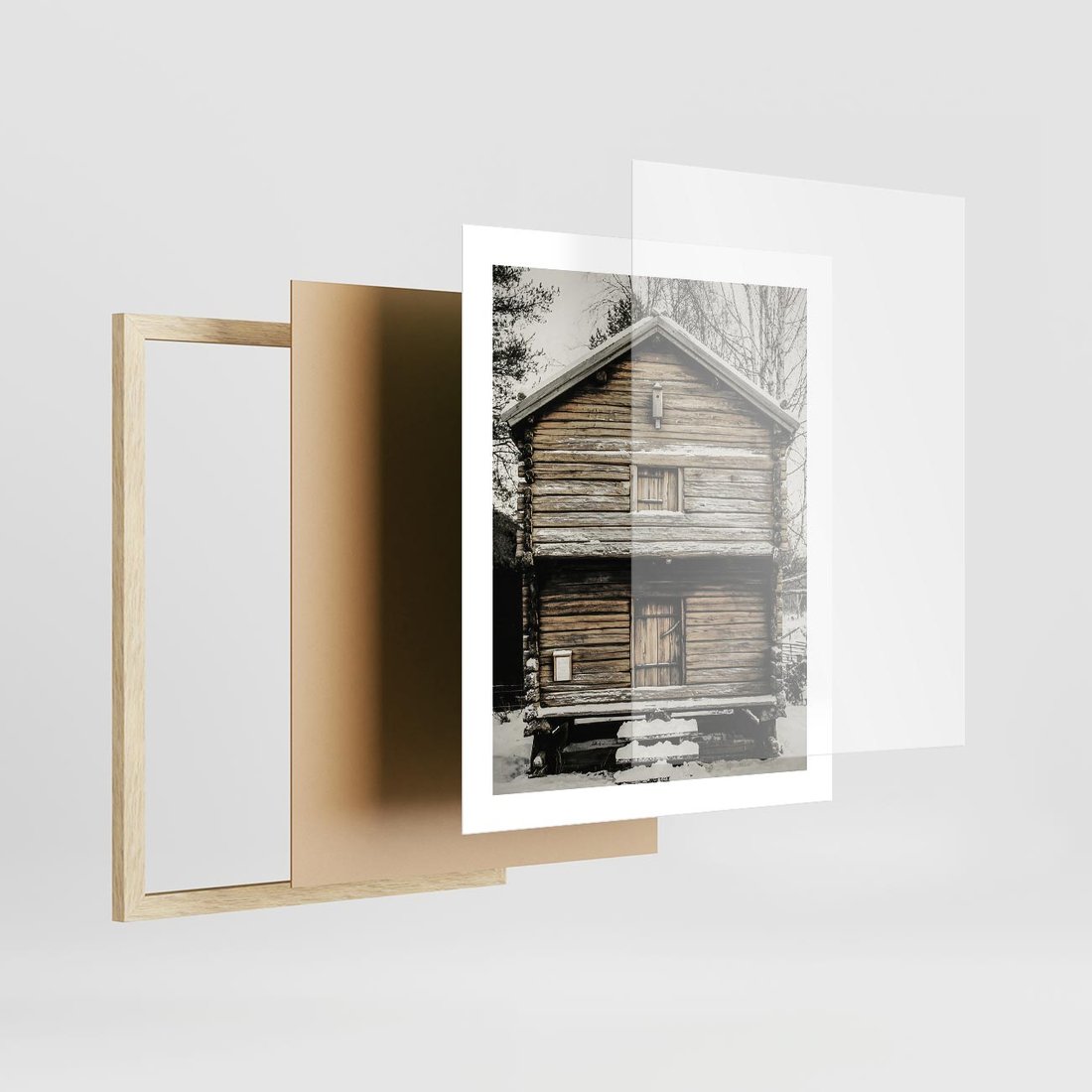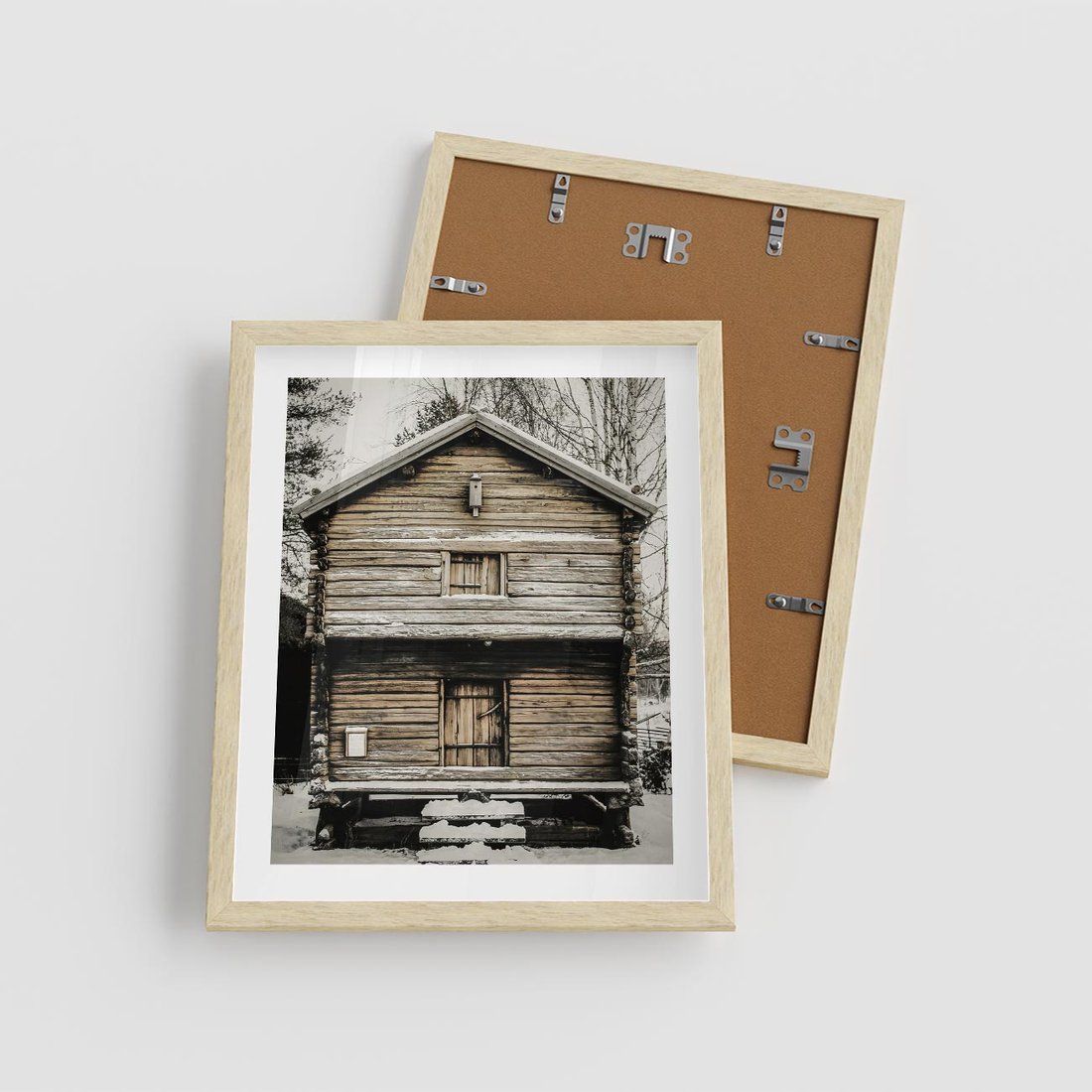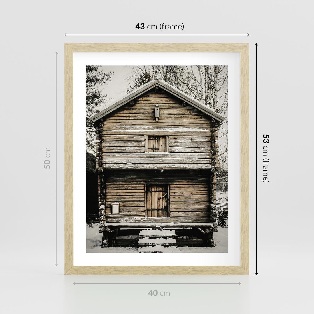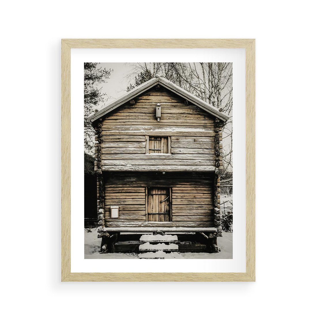 - Plakat w ramie 40x50 - Stary Drewniany Dom w Śniegu