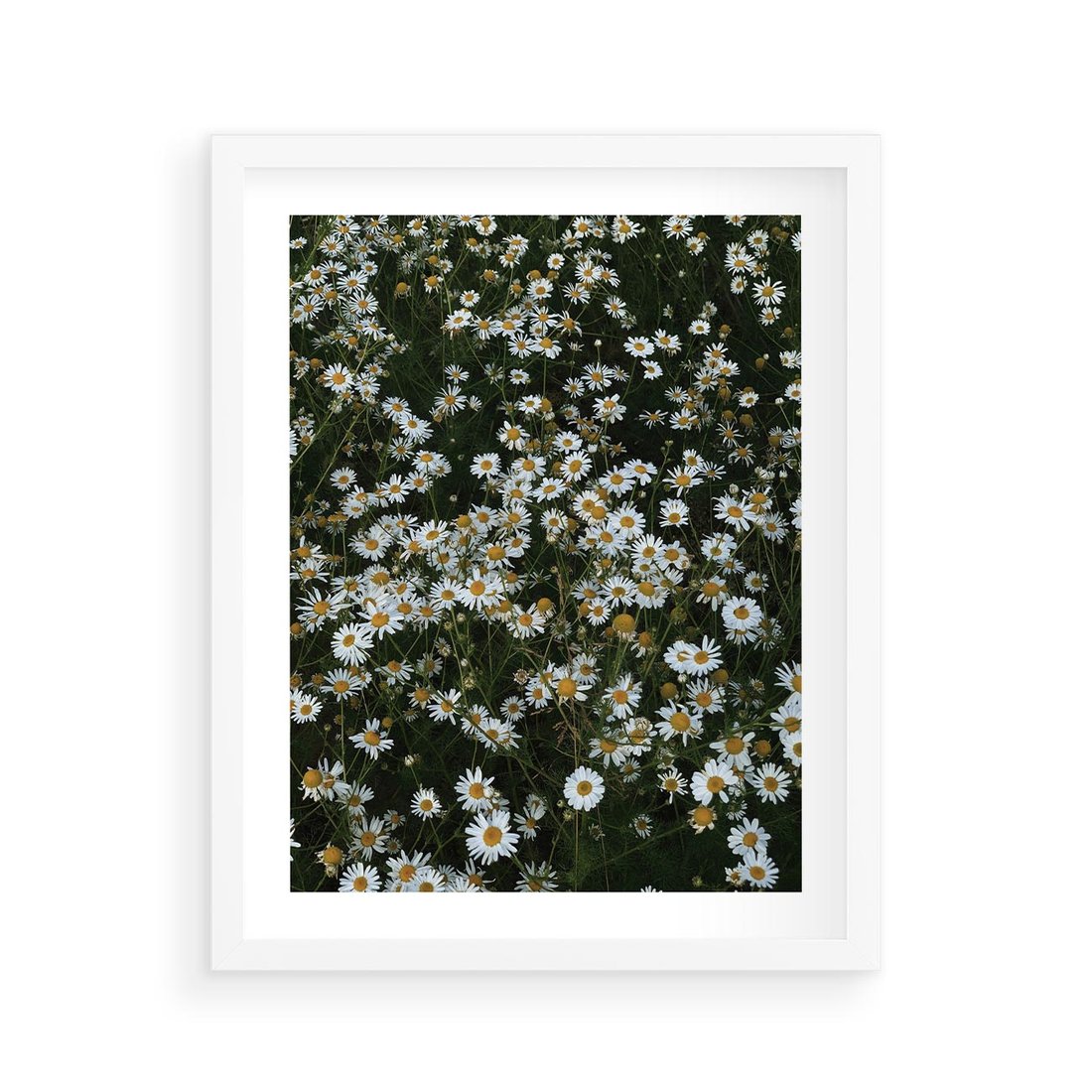 Plakat w ramie 40x50 - Stokrotkowa Idylla na Łące - łąka, stokrotki - rama biała