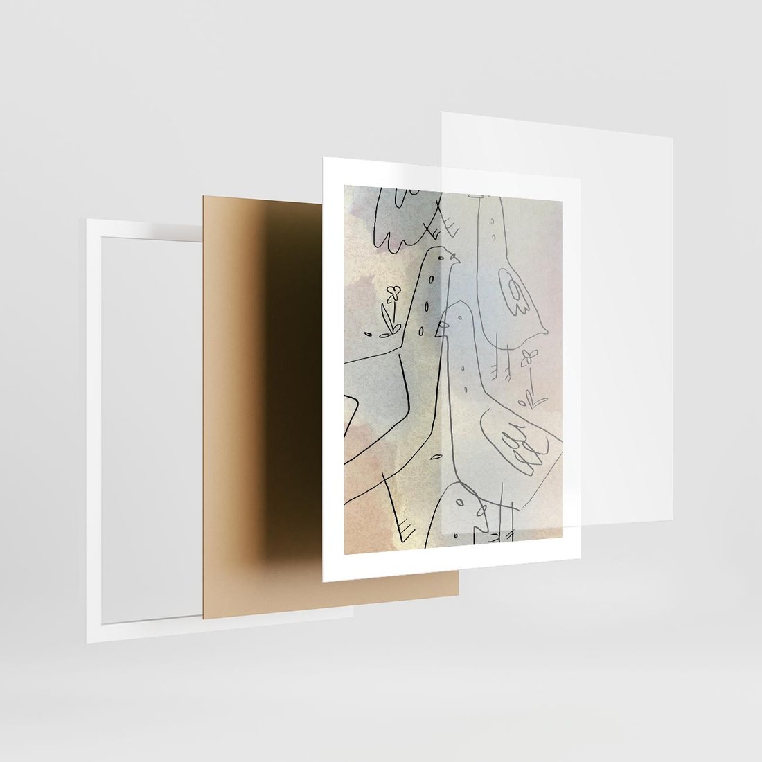 Nasz abstrakcyjny plakat w stylu modernizmu przedstawia wyjątkowy szkic ptaków. Zgeometryzowane formy i dynamiczne linie tworzą unikalną interpretację natury, oddając hołd dla nowatorskiej sztuki. Ten plakat to połączenie kreatywności i estetyki, doskonałe dla miłośników sztuki poszukujących oryginalnych i nowoczesnych akcentów.