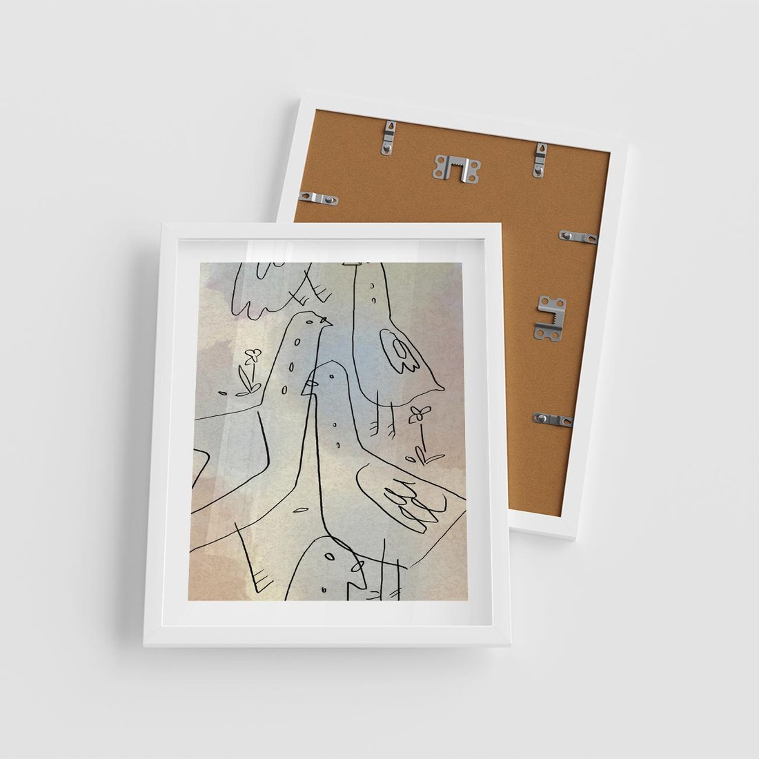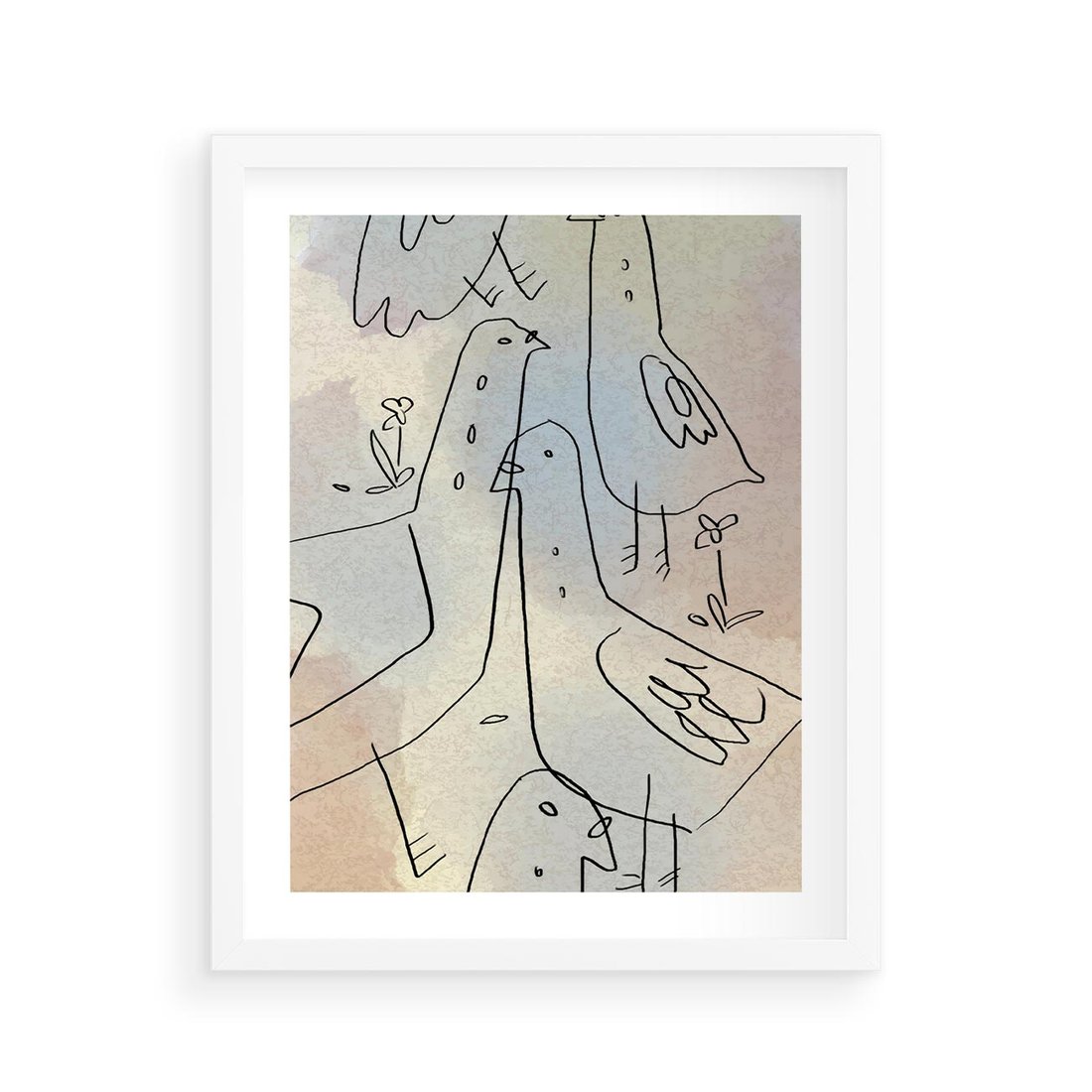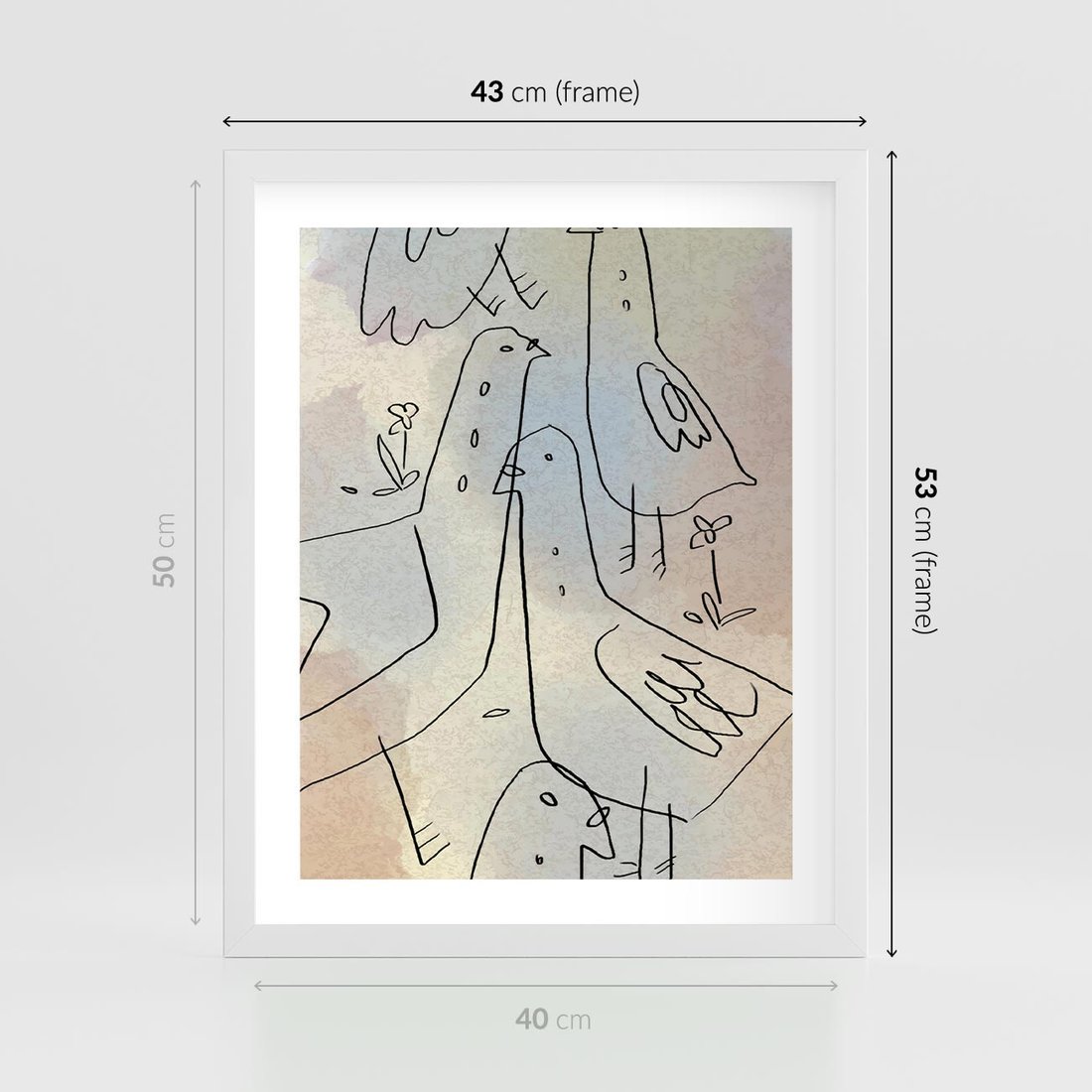 Plakat w ramie 40x50 - Strukturalna Gromada - abstrakcyjny plakat, szkic ptaków - rama biała