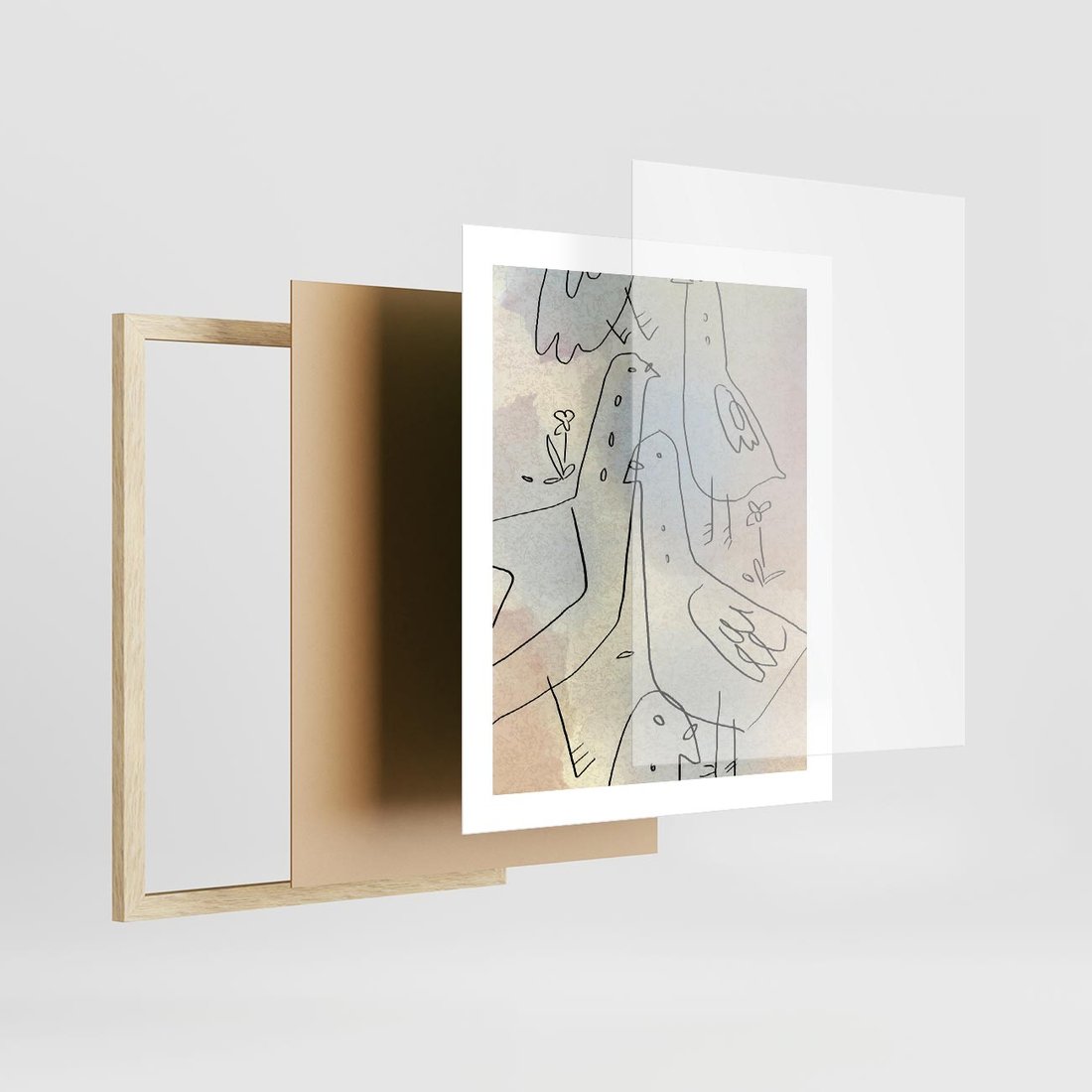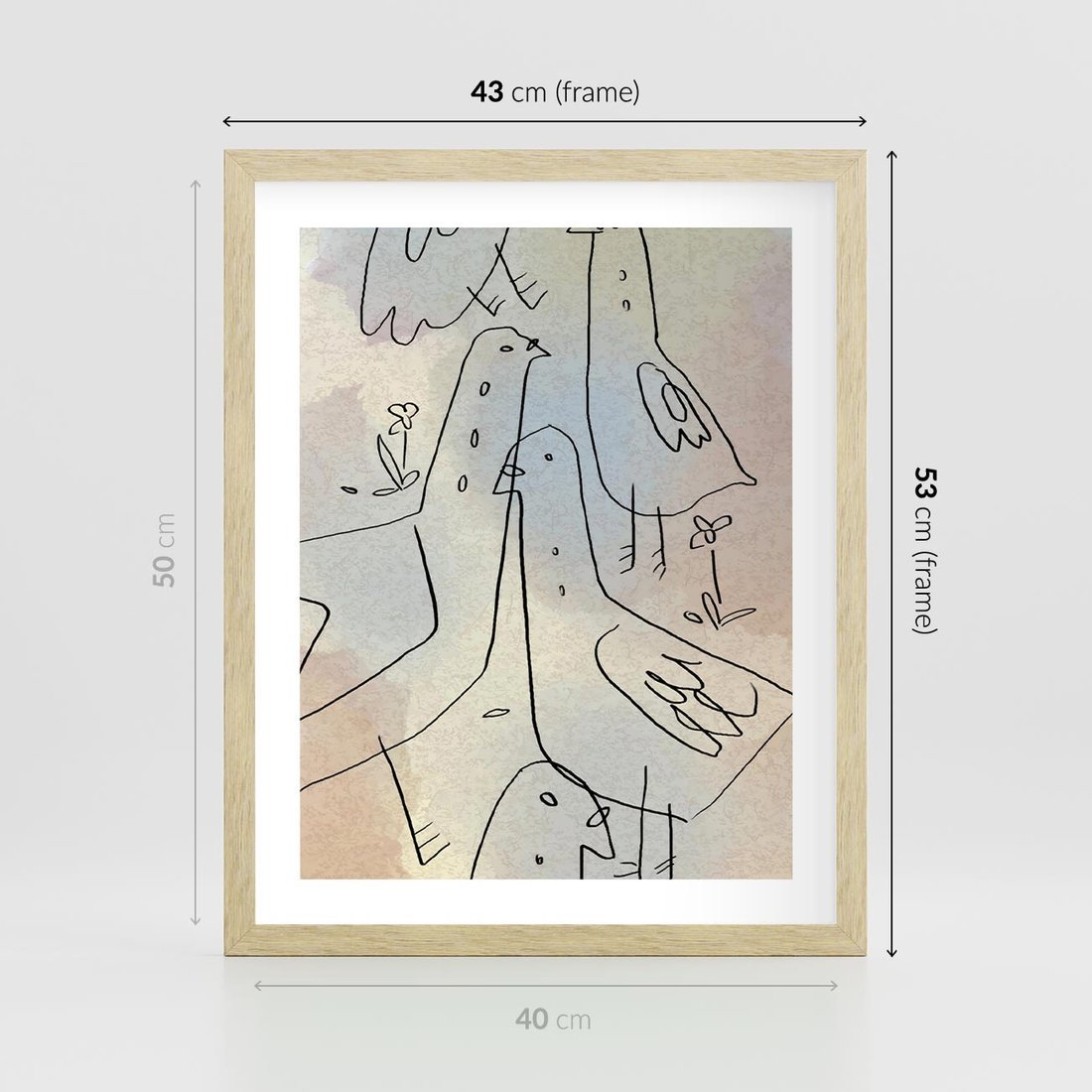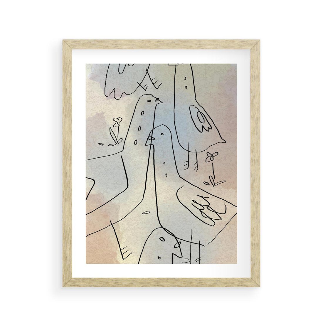 Plakat w ramie 40x50 - Strukturalna Gromada - abstrakcyjny plakat, szkic ptaków - rama drewno