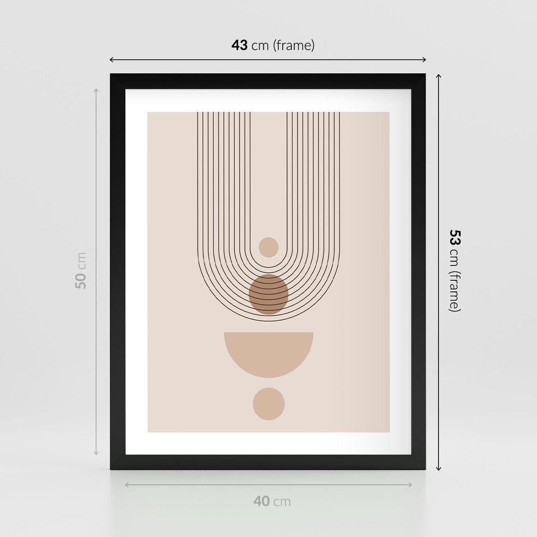 Nasz boho plakat łączy w sobie estetykę minimalizmu i nurtu mid century w delikatnych beżowych odcieniach. To artystyczne połączenie wprowadza do Twojej przestrzeni wyjątkową harmonię i spokój, oddając ducha zarówno stylu boho, jak i estetyki mid century.
