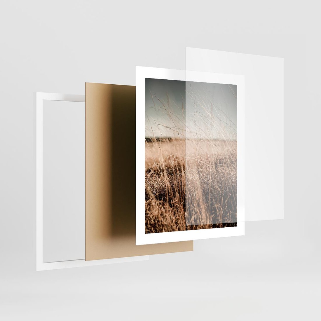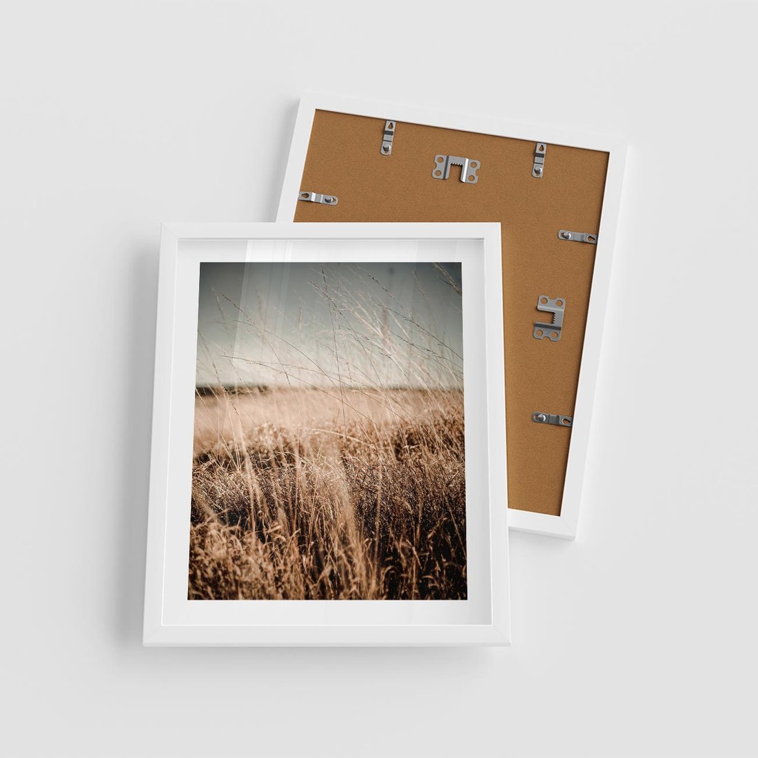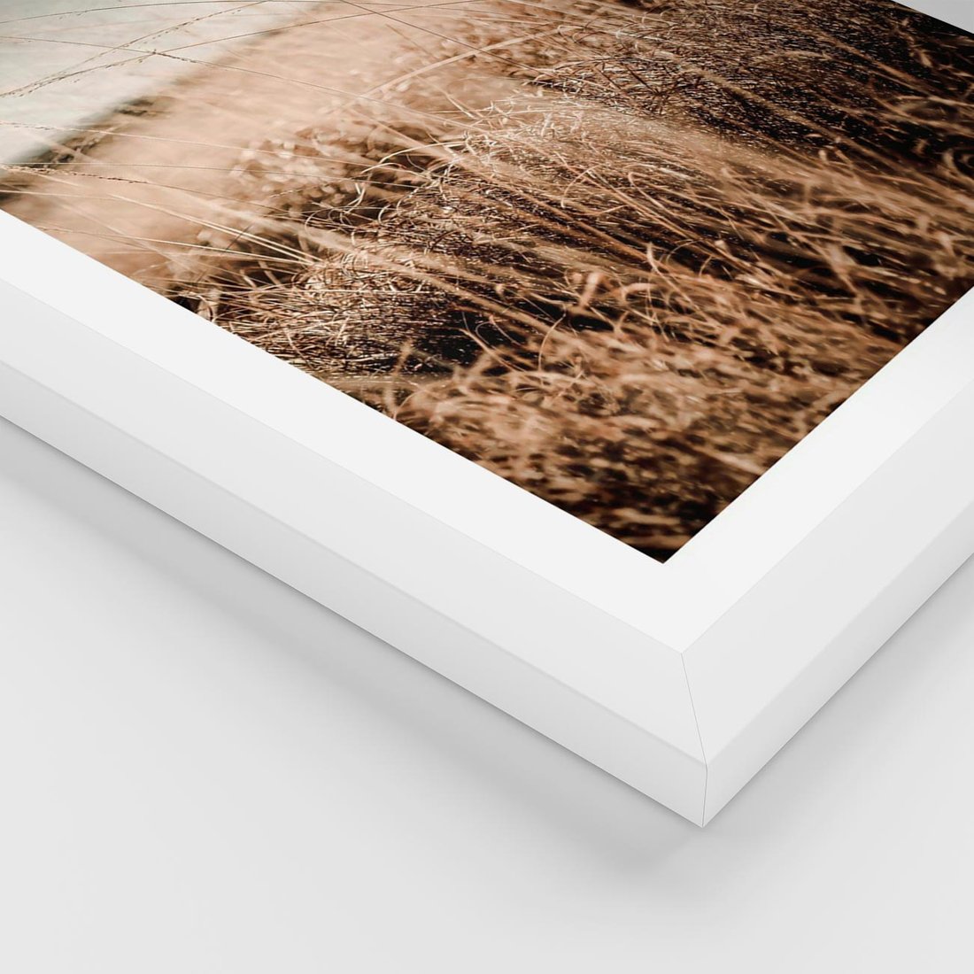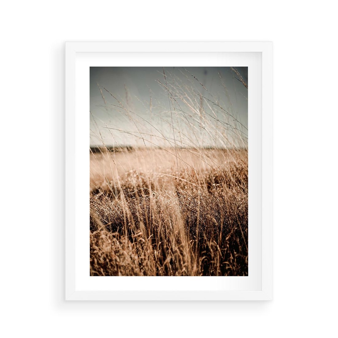Plakat w ramie 40x50 - Sucha Trawa w Odcieniach Sepii - suche trawy, łąka odcienie beżu - rama biała