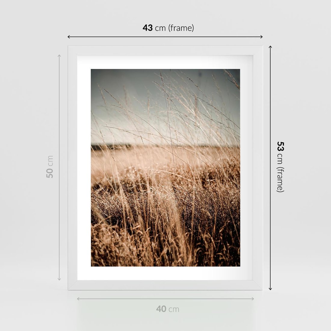 - Plakat w ramie 40x50 - Sucha Trawa w Odcieniach Sepii