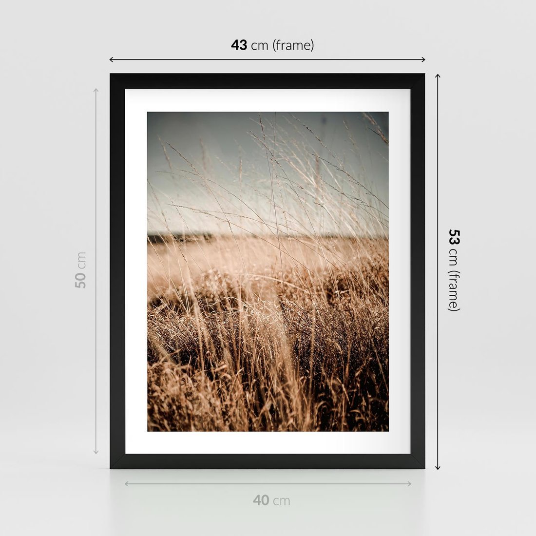 - Plakat w ramie 40x50 - Sucha Trawa w Odcieniach Sepii