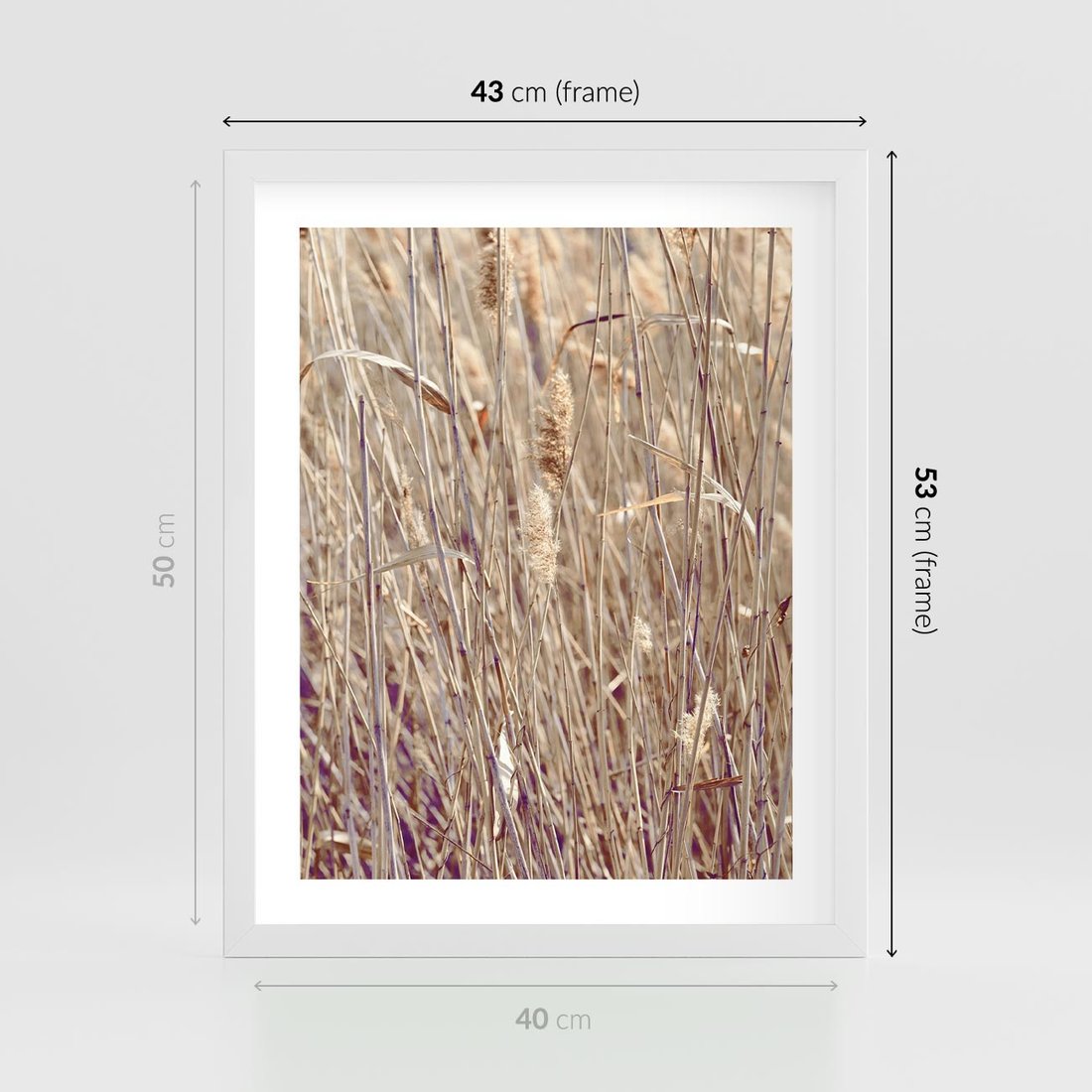 Plakat w ramie 40x50 - Suche Trawy w Wyjątkowym Stylu - suche trawy, boho styl - rama biała