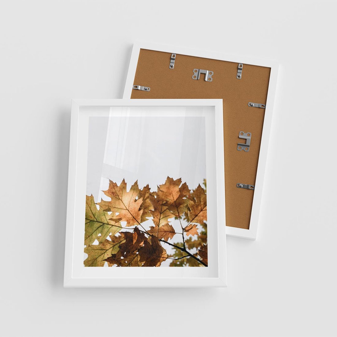 Plakat w ramie 40x50 - Suche Żółte Liście w Malowniczym Ujęciu - liście, żółte - rama biała