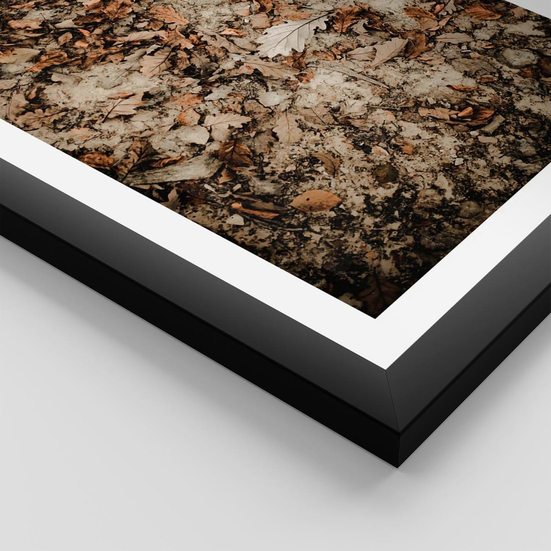 Plakat w ramie 40x50 - Suchość Liści w Brązowych Tonach - suche liście jesień brąz - rama czarna