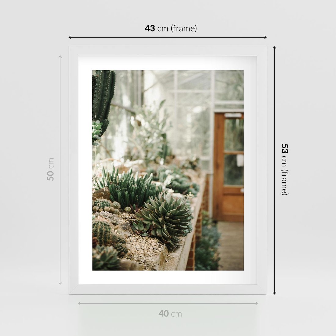 Plakat w ramie 40x50 - Sukulenty w Szklarni - sukulenty, w szklarni - rama biała