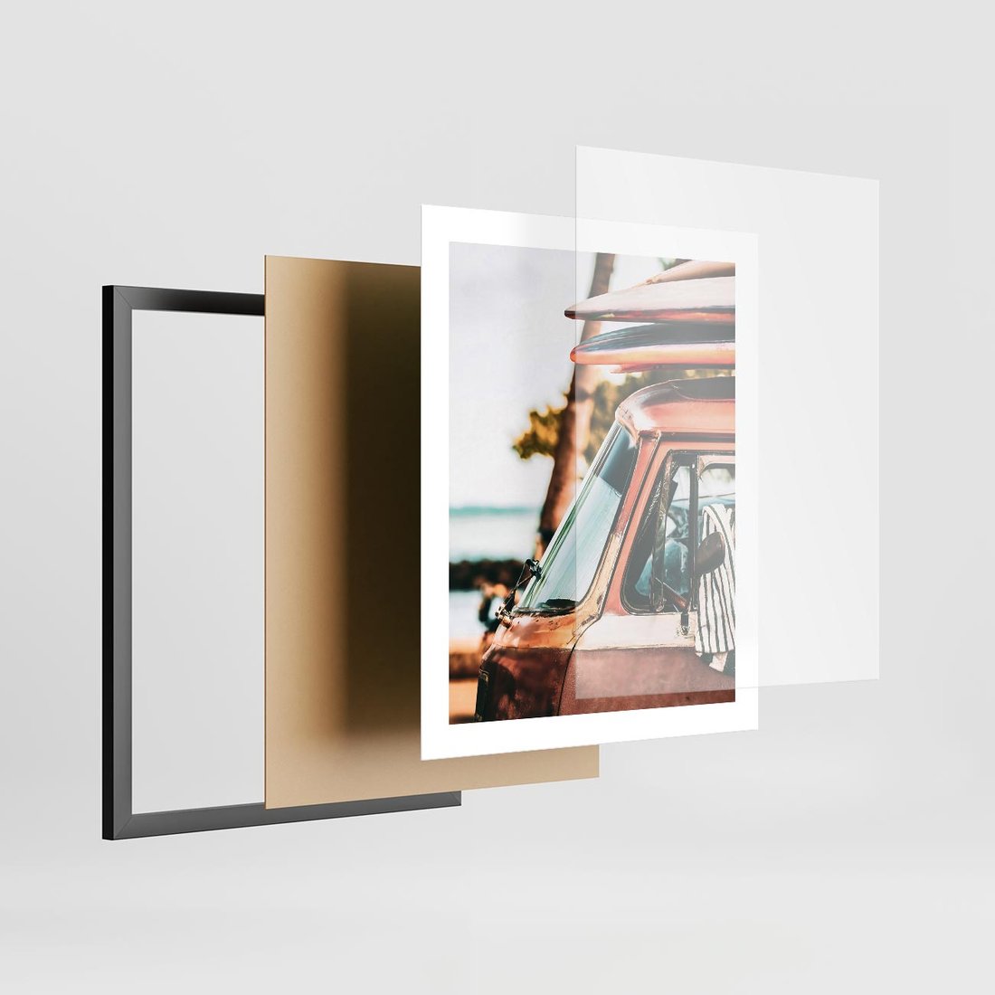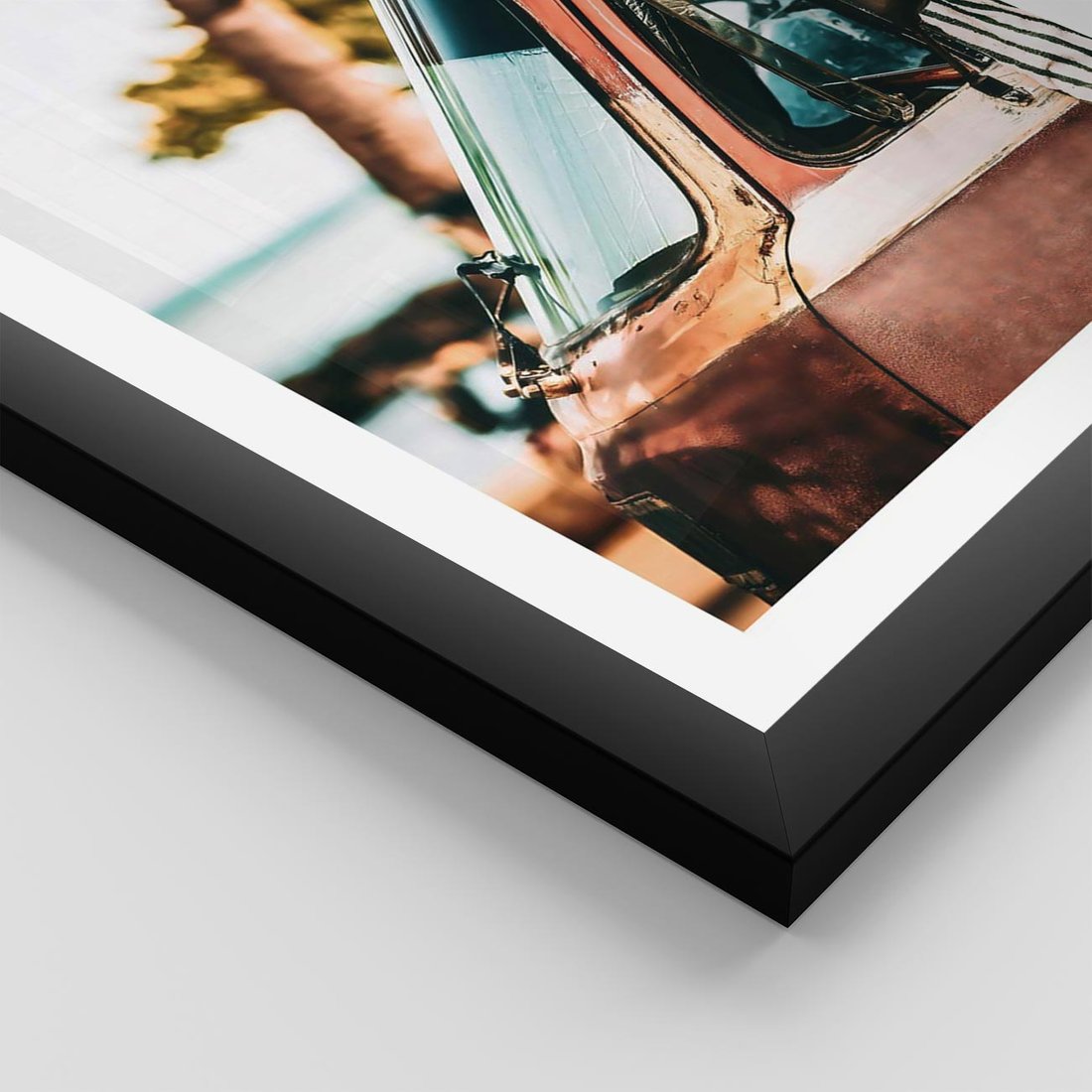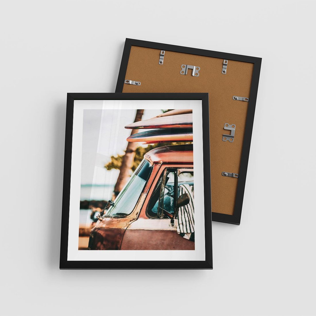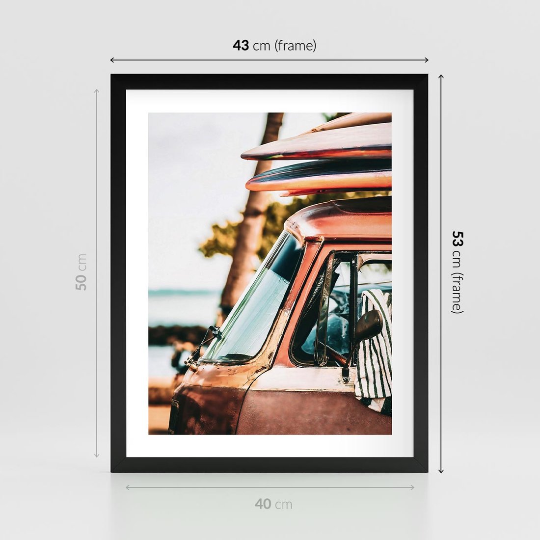 Plakat w ramie 40x50 - Surfingowa Wolność - samochód, stary van - rama czarna