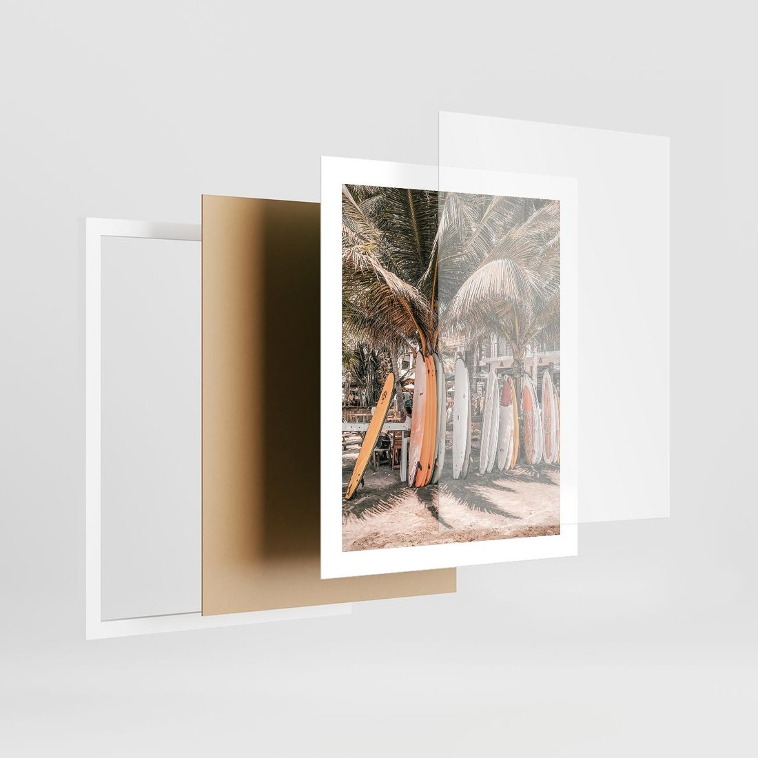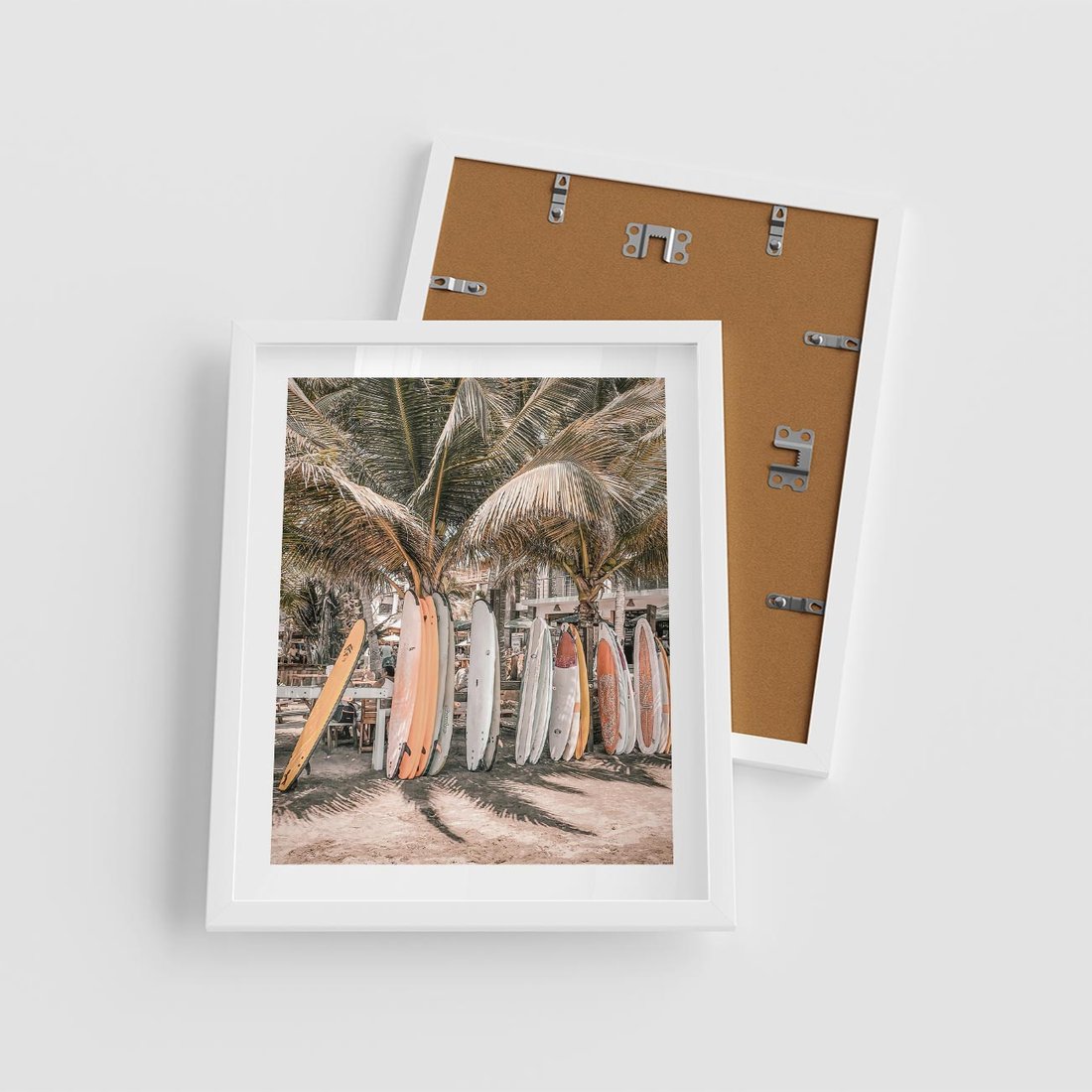 Plakat w ramie 40x50 - Surfingowy Raj - deski surfingowe, na plaży - rama biała