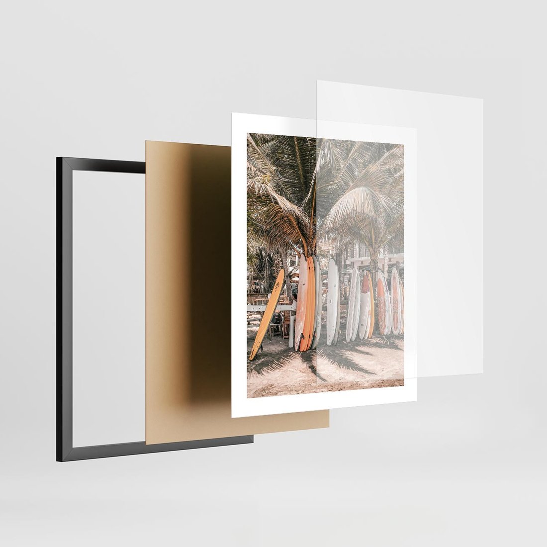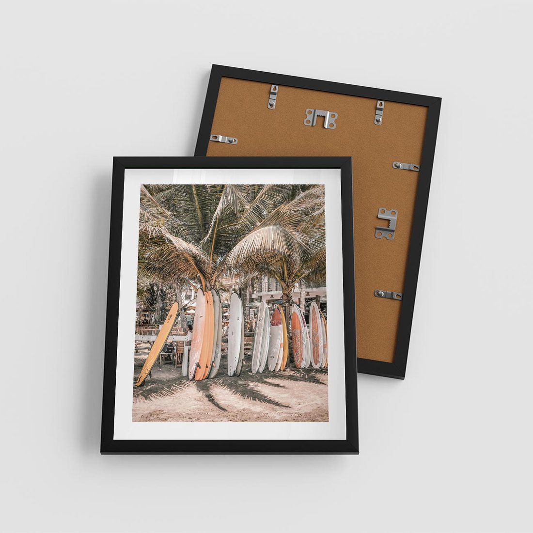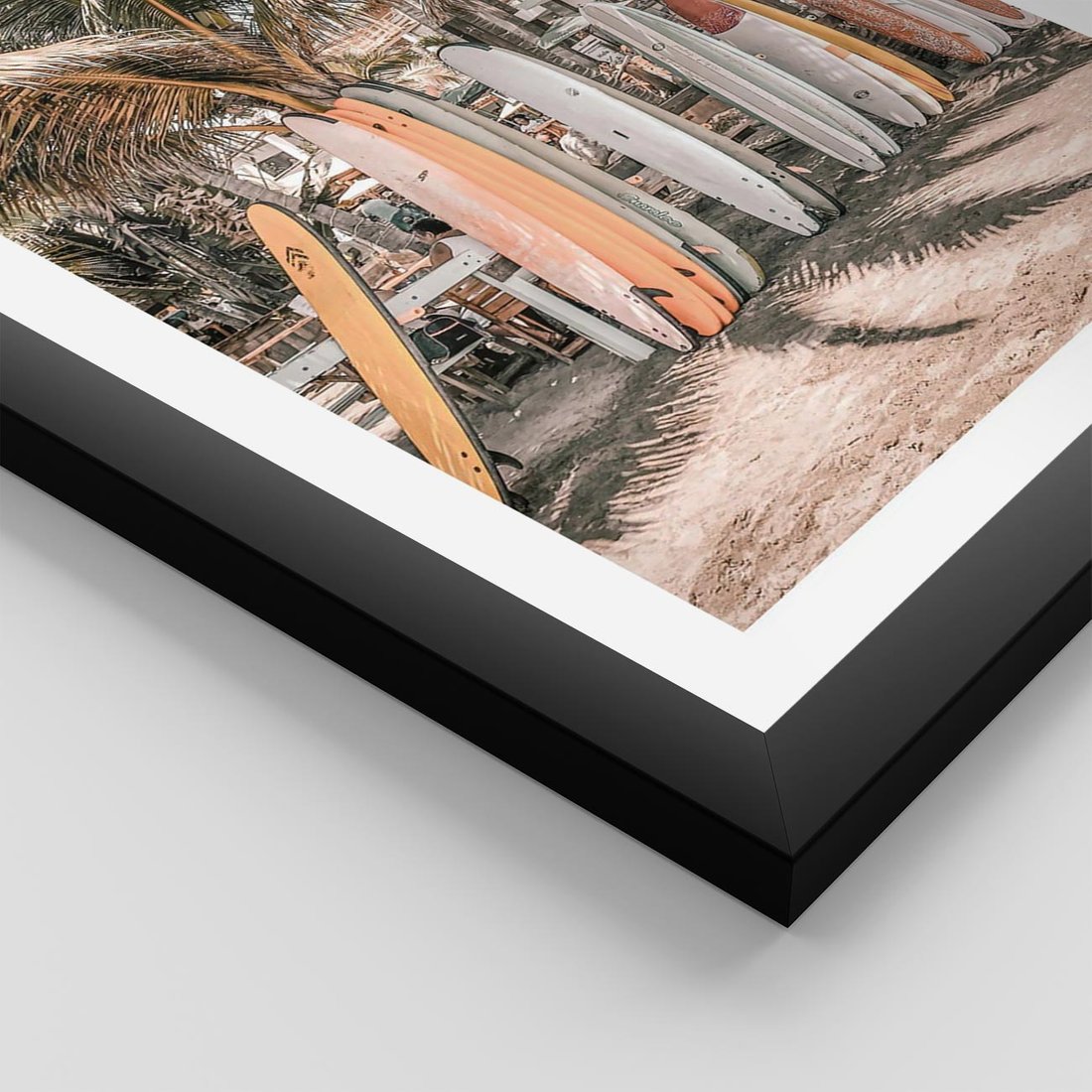 Plakat w ramie 40x50 - Surfingowy Raj - deski surfingowe, na plaży - rama czarna