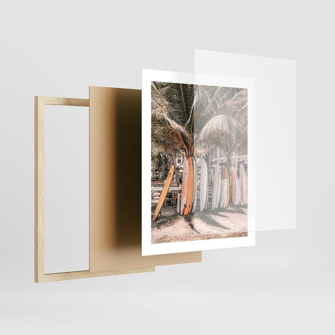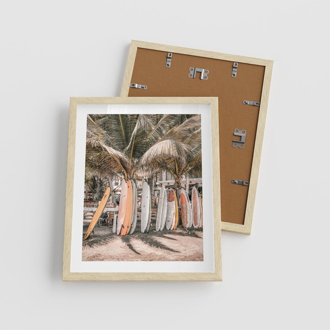 Plakat w ramie 40x50 - Surfingowy Raj - deski surfingowe, na plaży - rama drewno