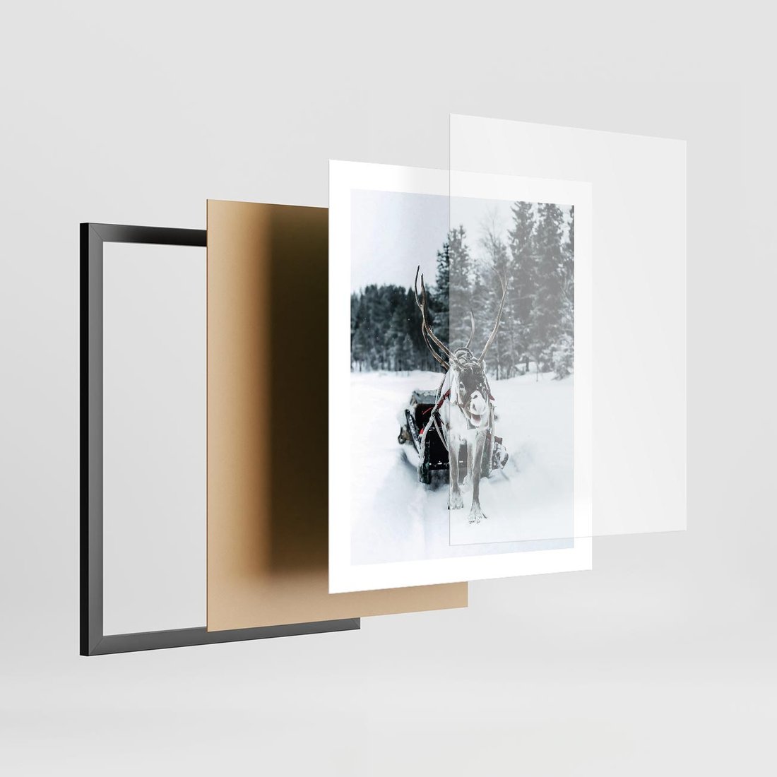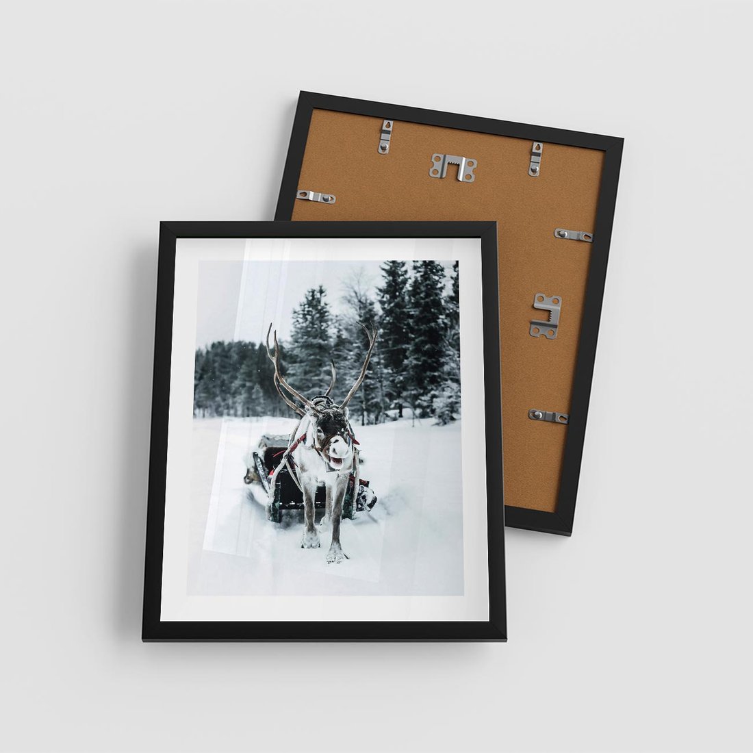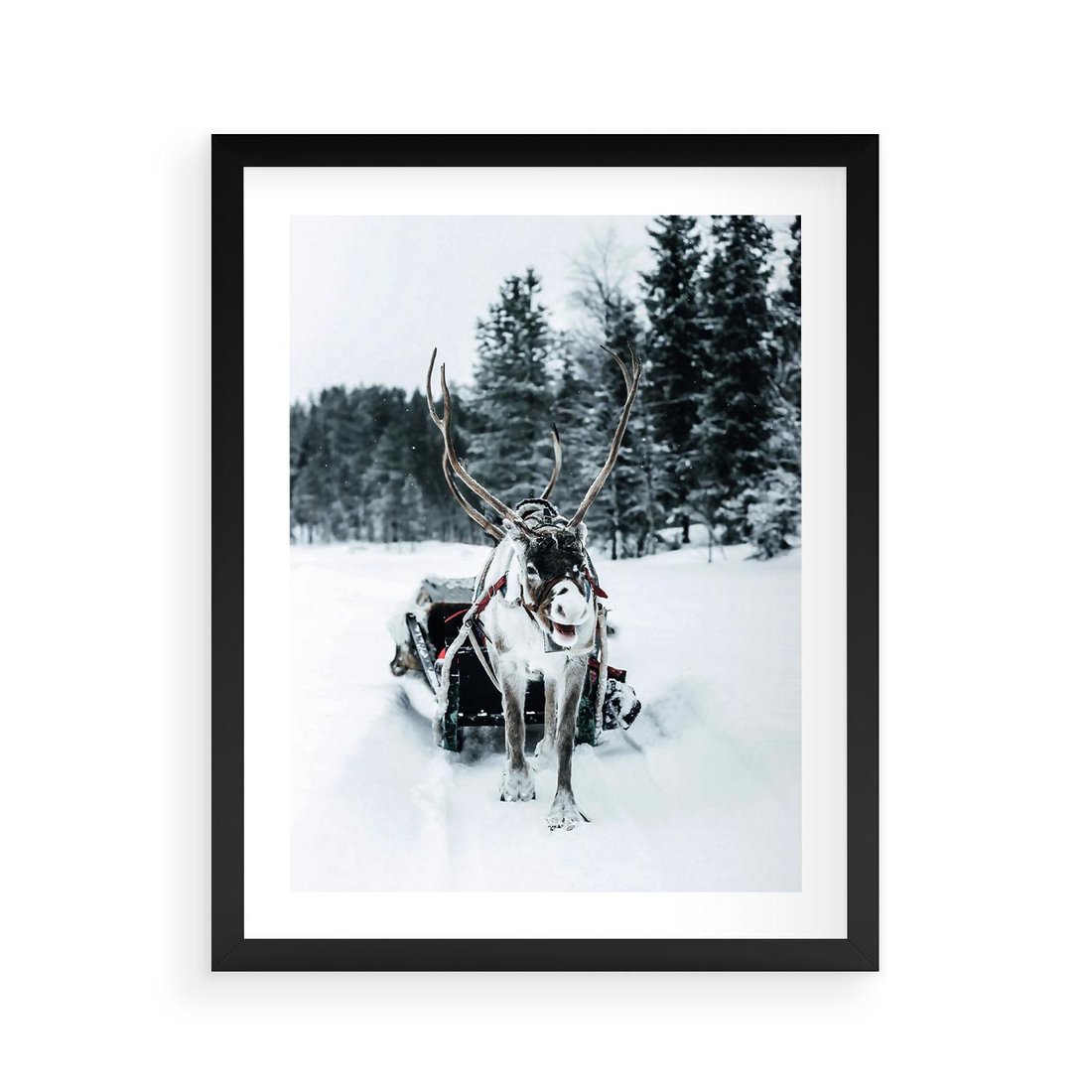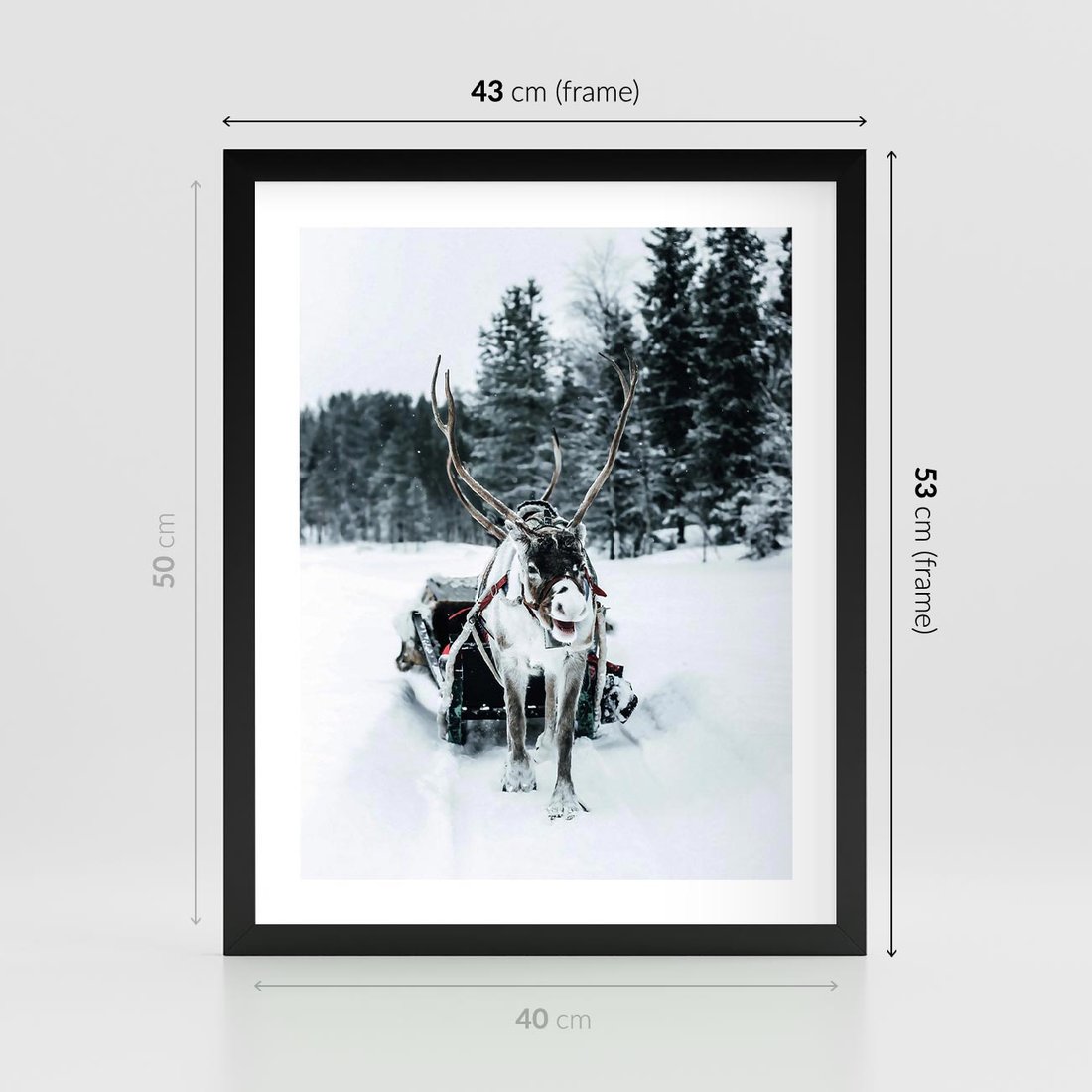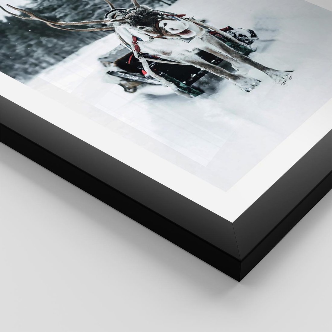 Plakat w ramie 40x50 - Świąteczna Przygoda - renifer, śnieg - rama czarna