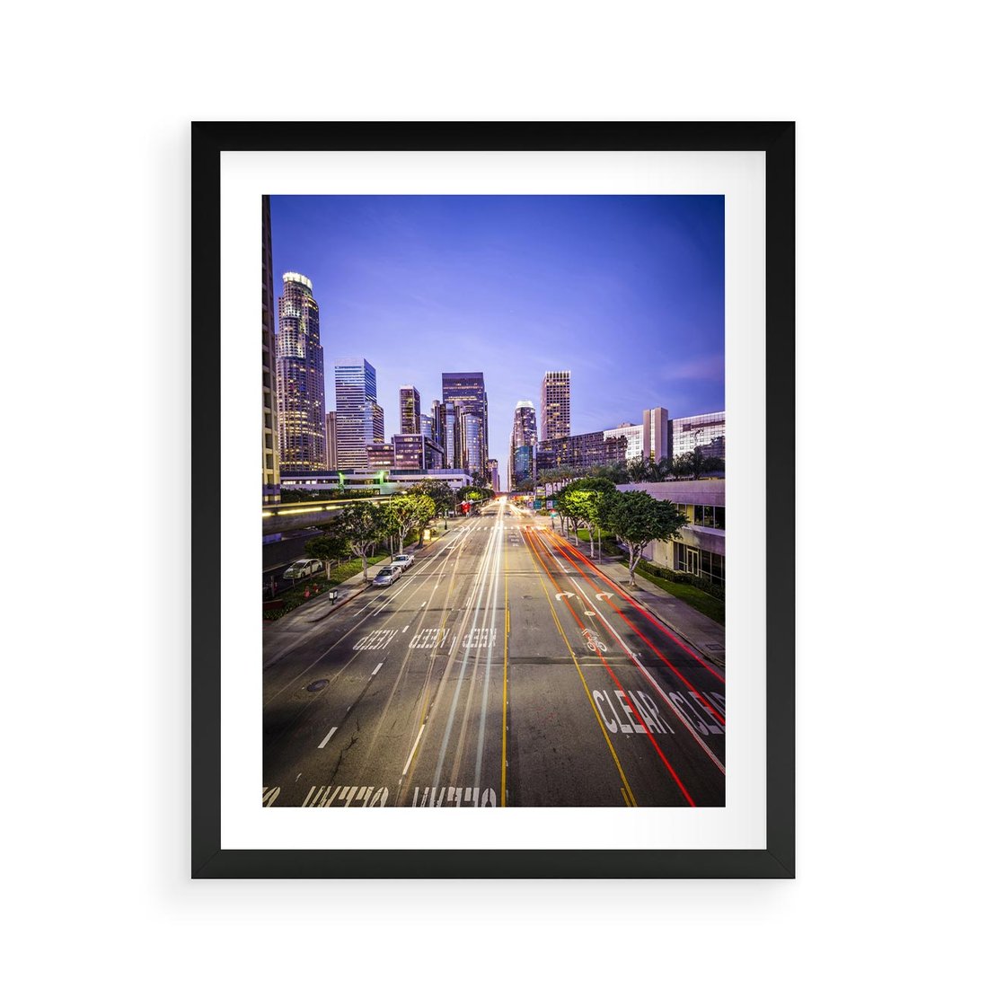 Plakat w ramie 40x50 - Światło nocnej ulicy - miasto, nocą - rama czarna