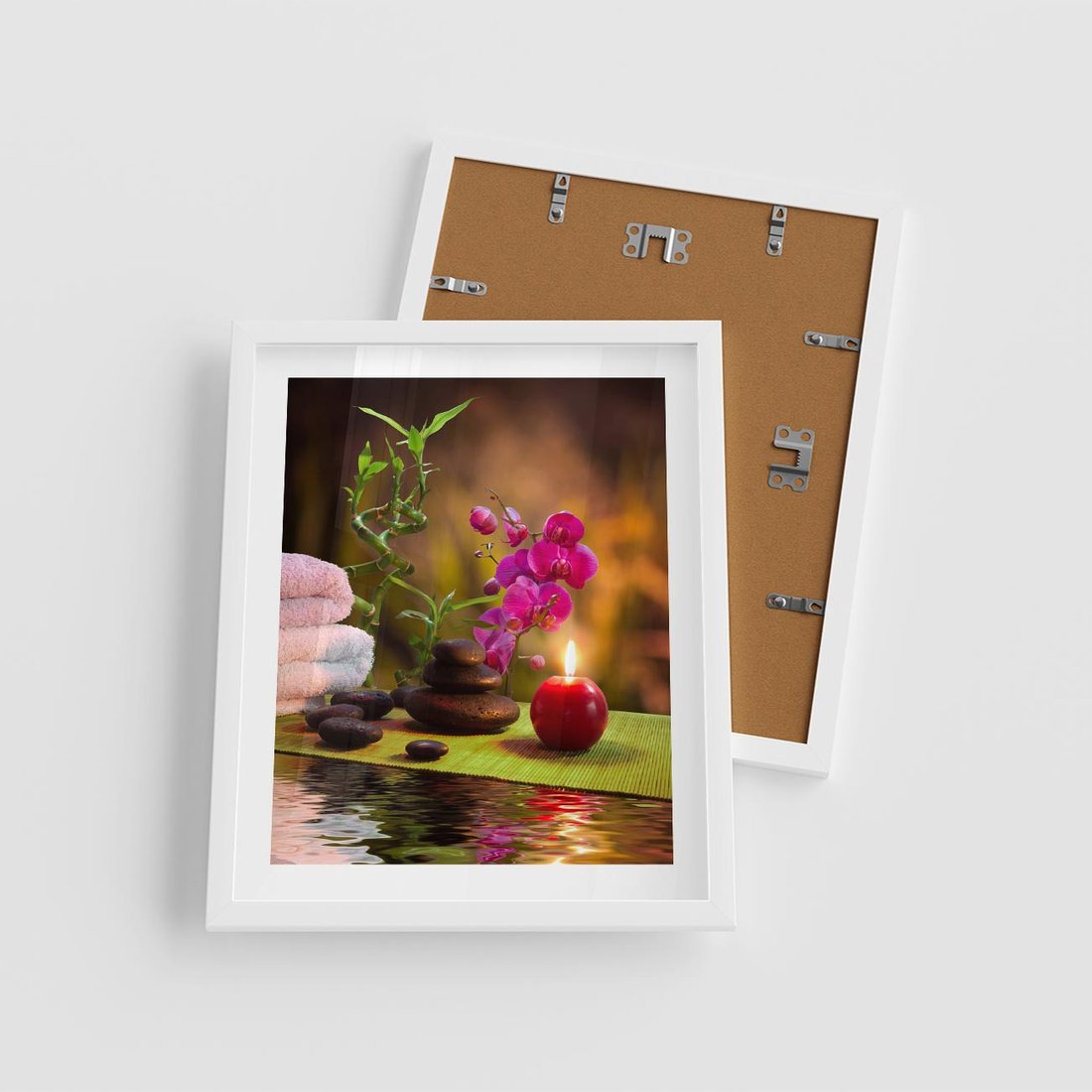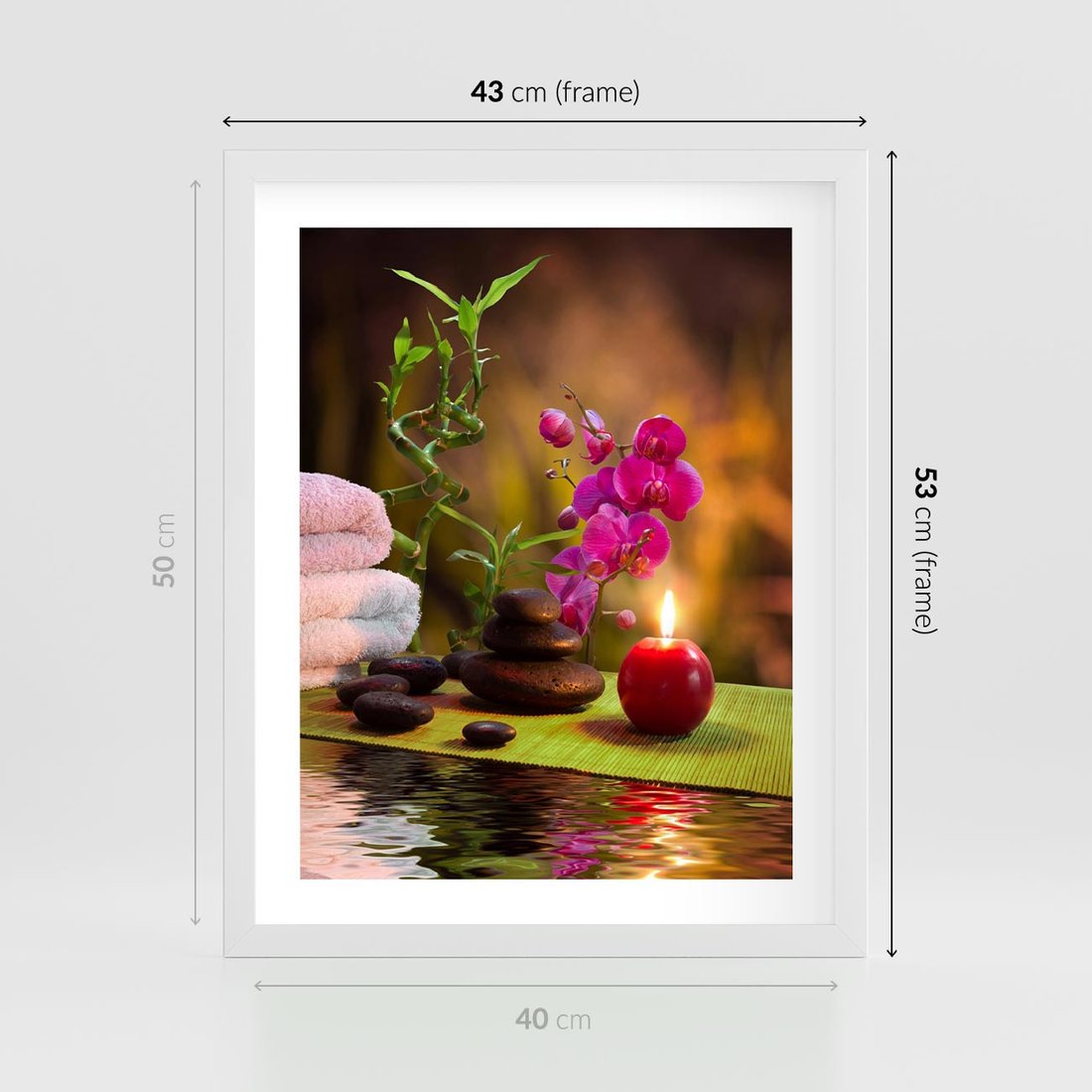 Plakat w ramie 40x50 - Światło Świecących Kwiatów w Spa - spa, świaca - rama biała