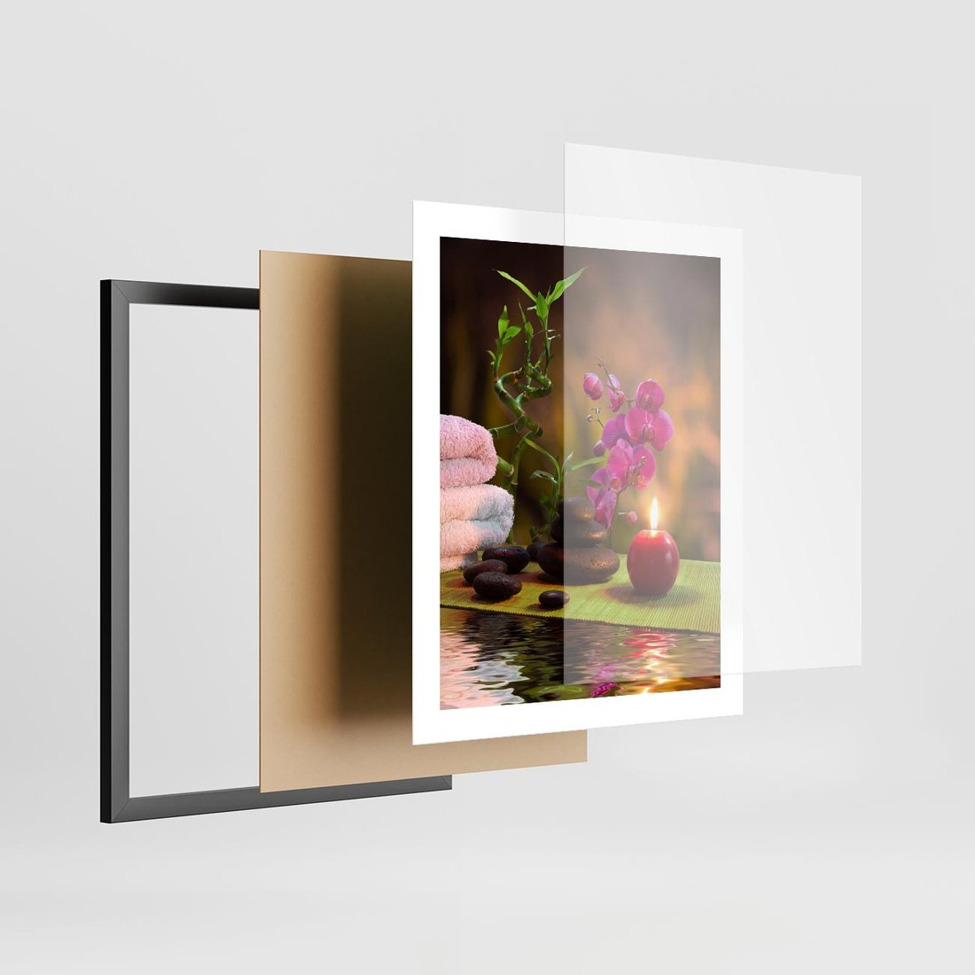 Plakat w ramie 40x50 - Światło Świecących Kwiatów w Spa - spa, świaca - rama czarna