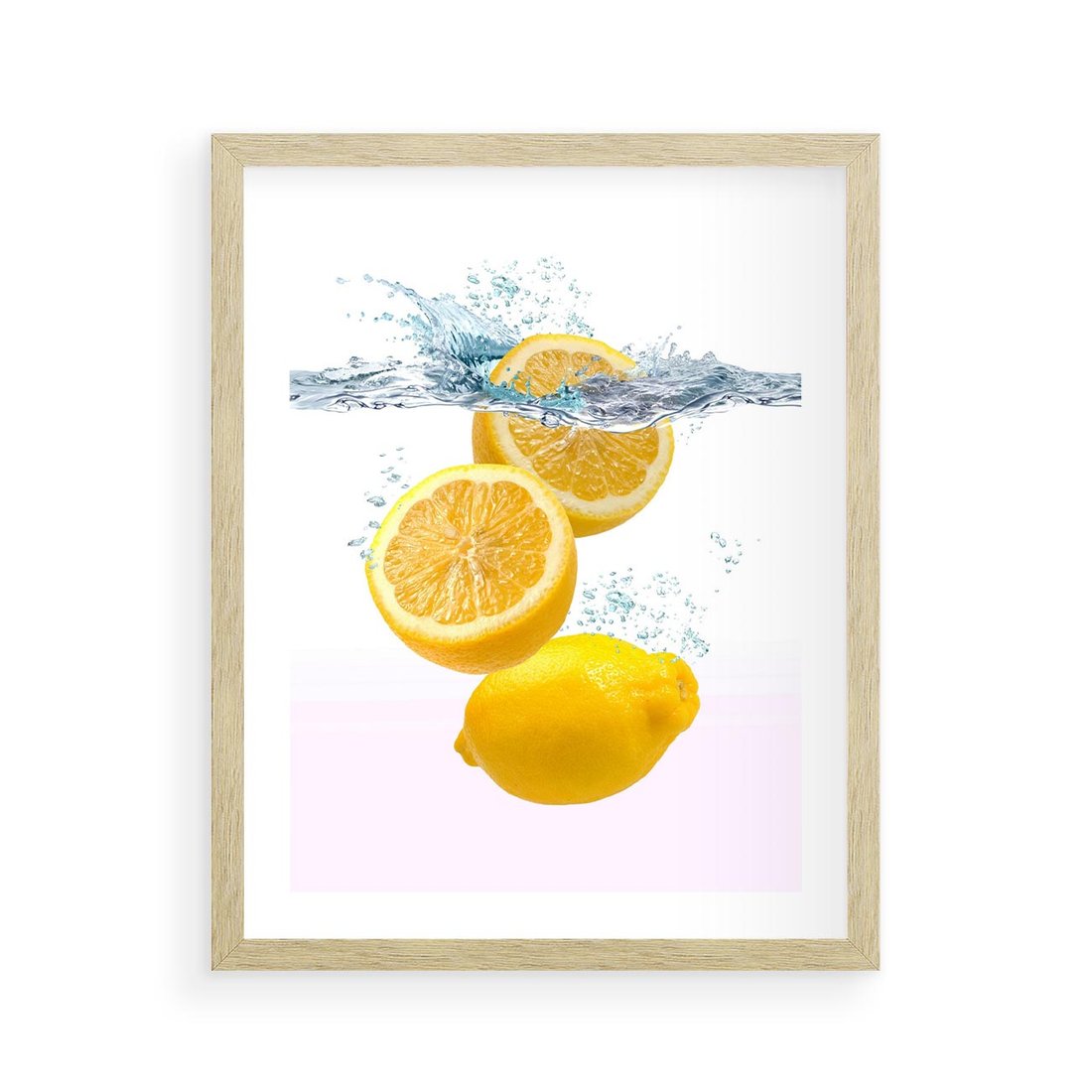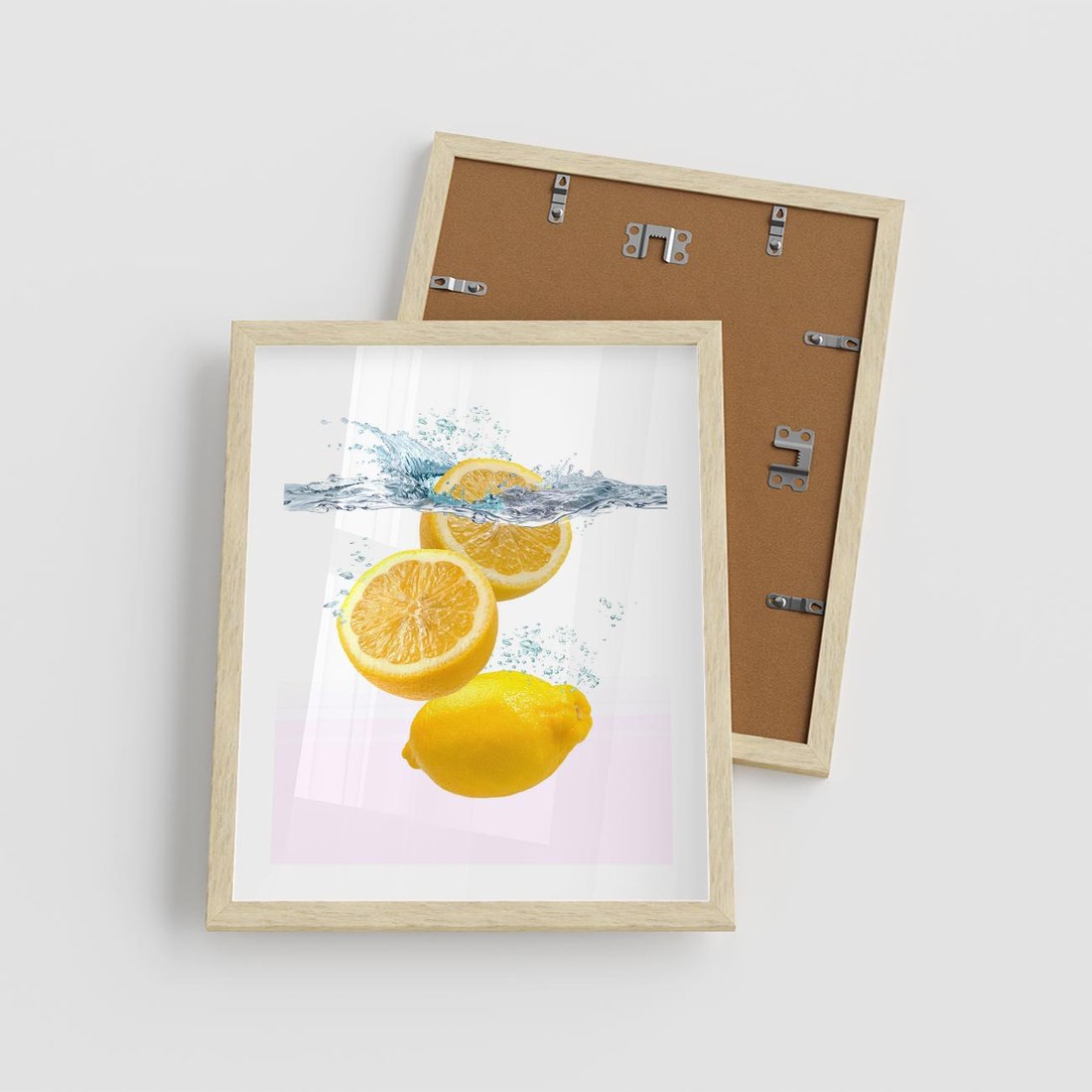 Plakat w ramie 40x50 - Świeże cytryny pełne smaku - cytryny, owoce - rama drewno