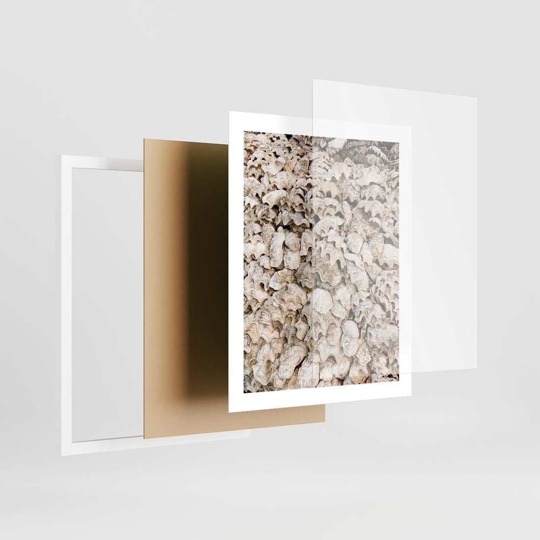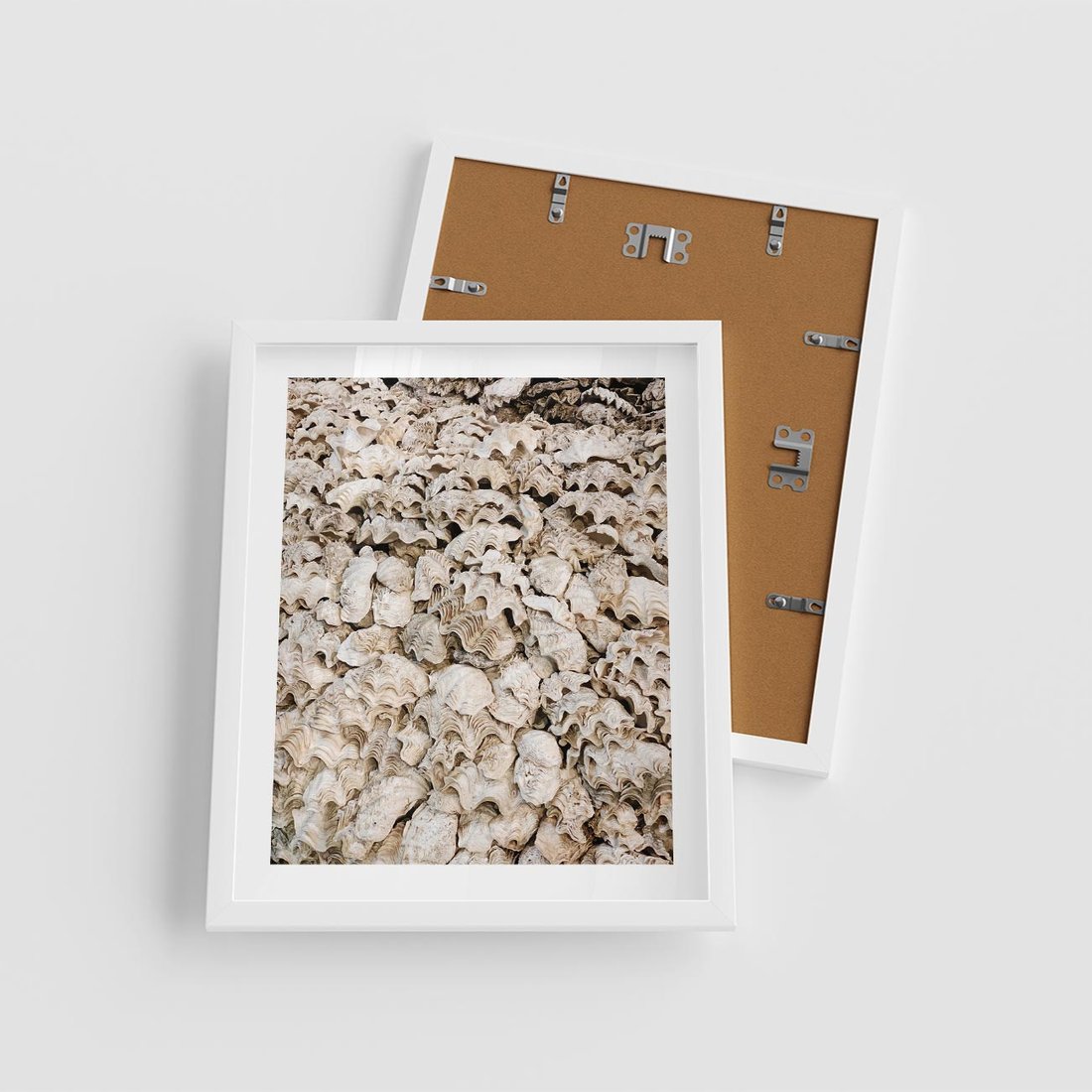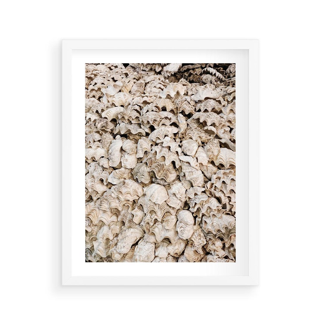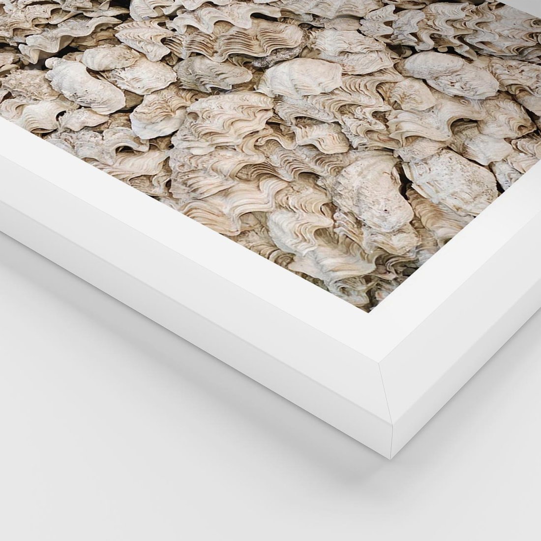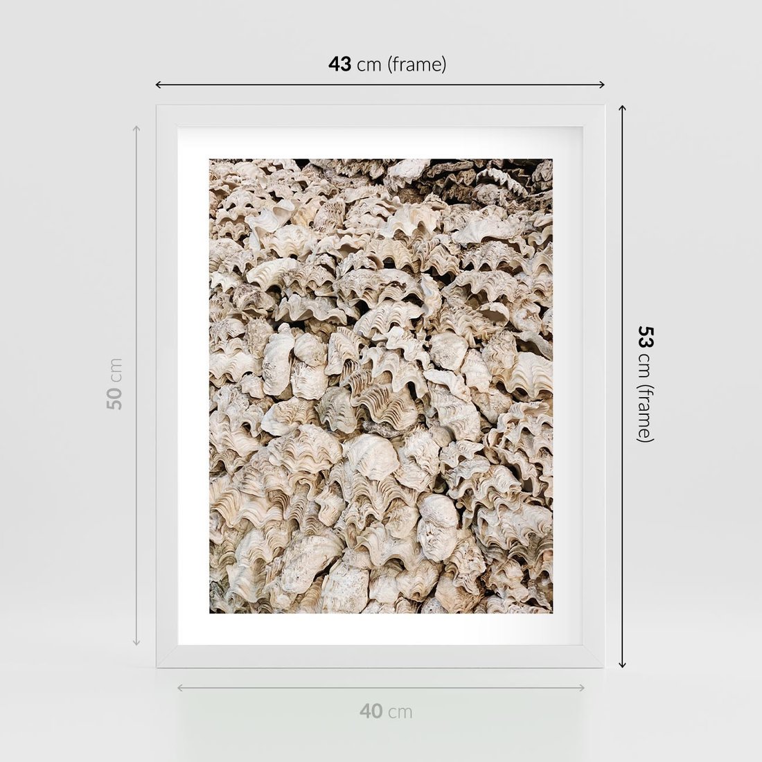 Plakat w ramie 40x50 - Symfonia Natury - kompozycja z białych muszli - rama biała